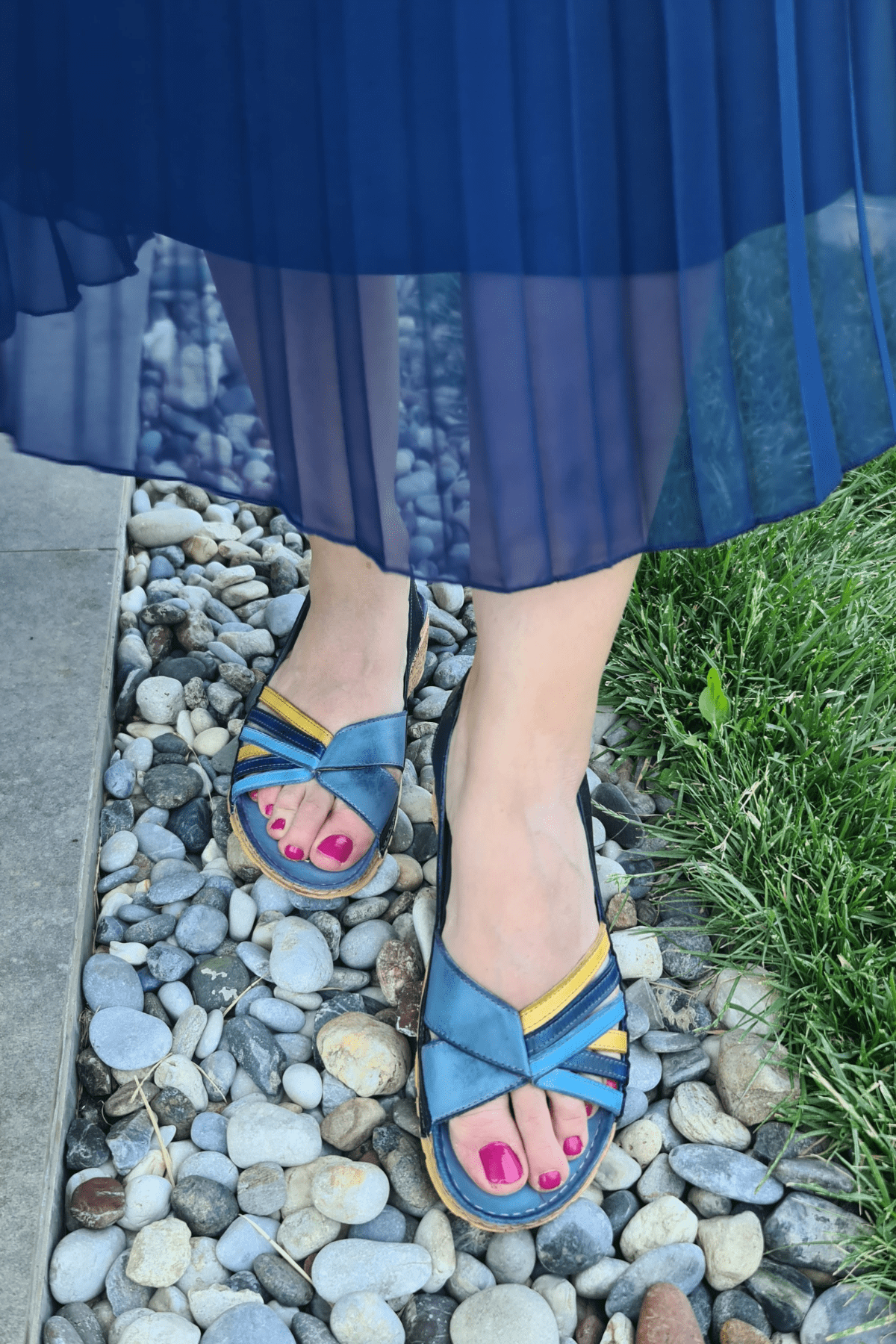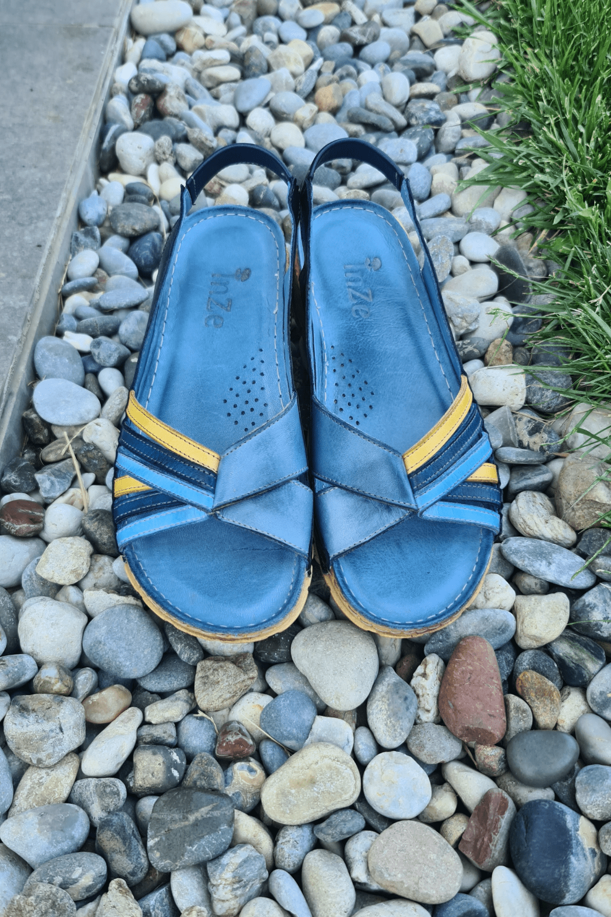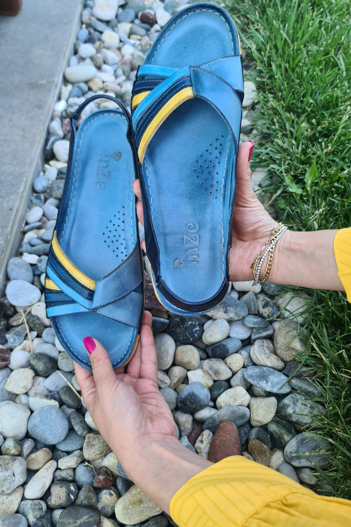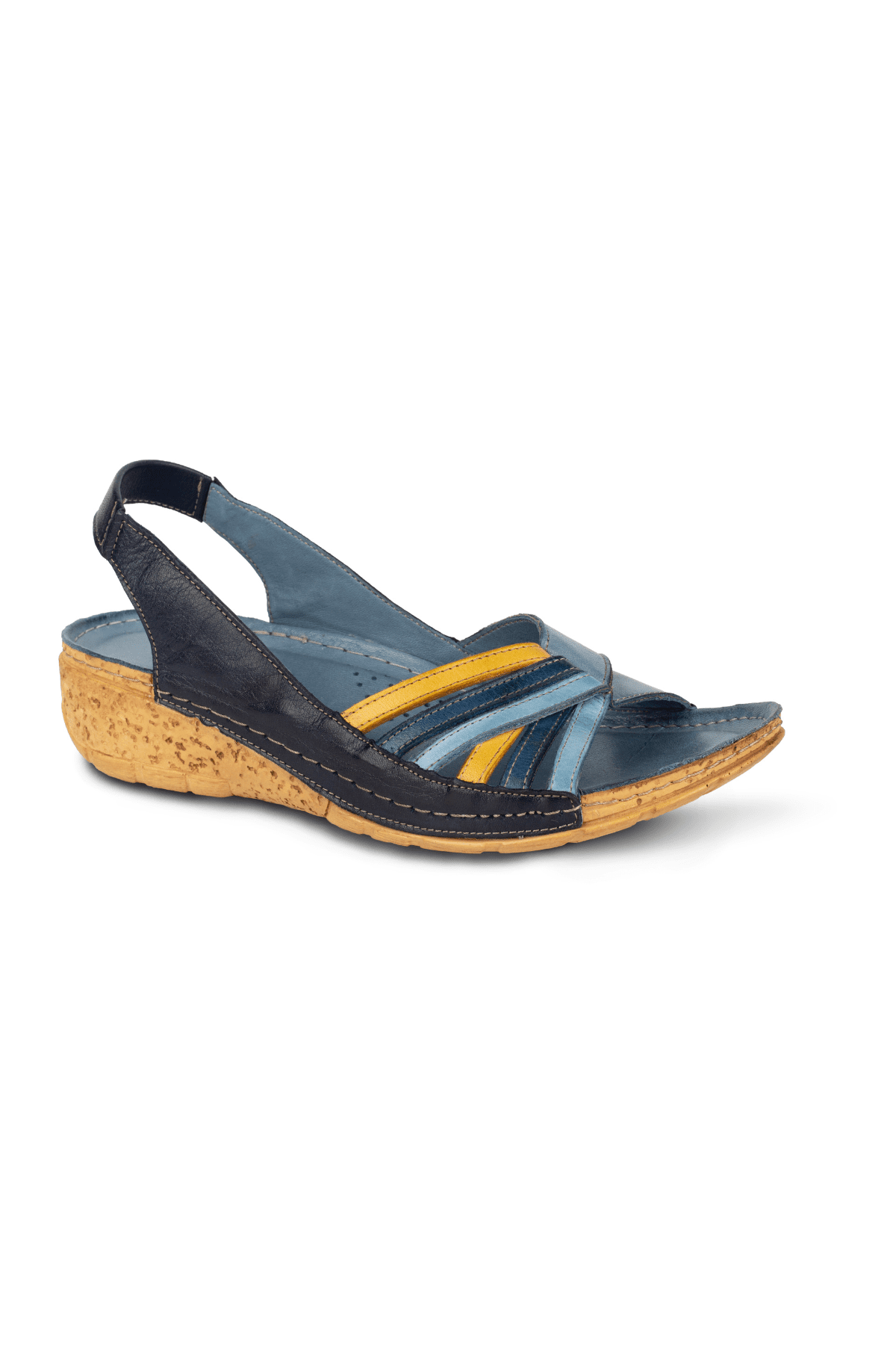 ÇOK BANTLI, İÇ DIŞ HAKİKİ DERİ, ARKA AYARLANABİLİR TOKALI,DESENLİ POLİÜRETAN MANTAR TABAN, DOLGU TOPUK.
