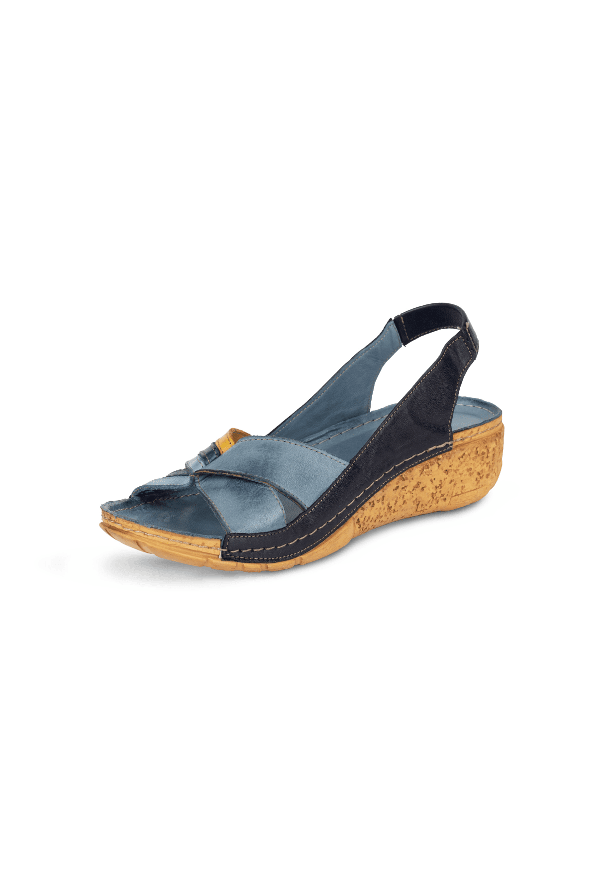 ÇAPRAZ 3 BANT DETAYLI, ARKA BİLEK LASTİKLİ,İÇİ VE DIŞI HAKİKİ DERİ,DOLGU TOPUKLU,POLİÜRETAN MANTAR TABAN