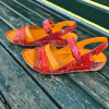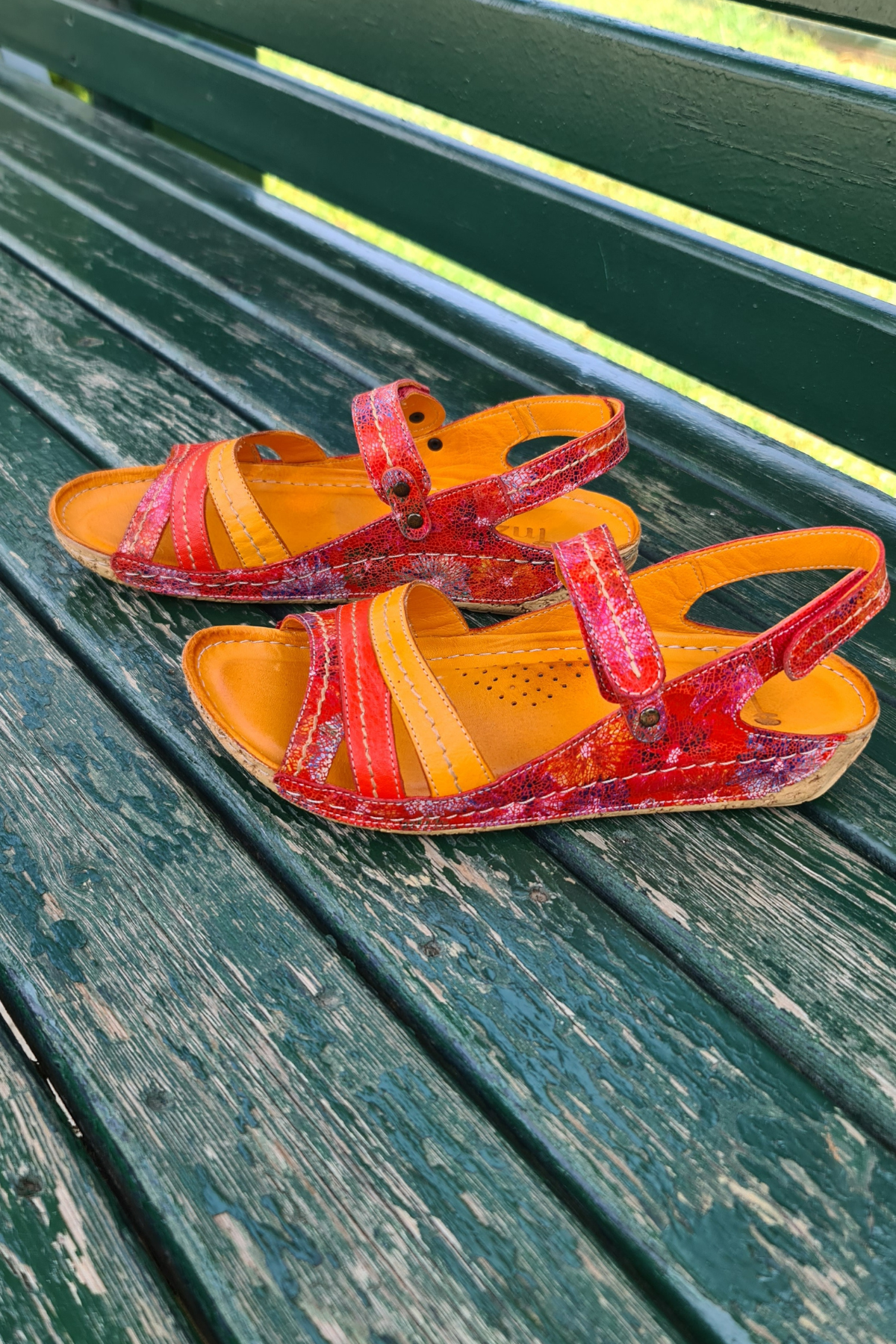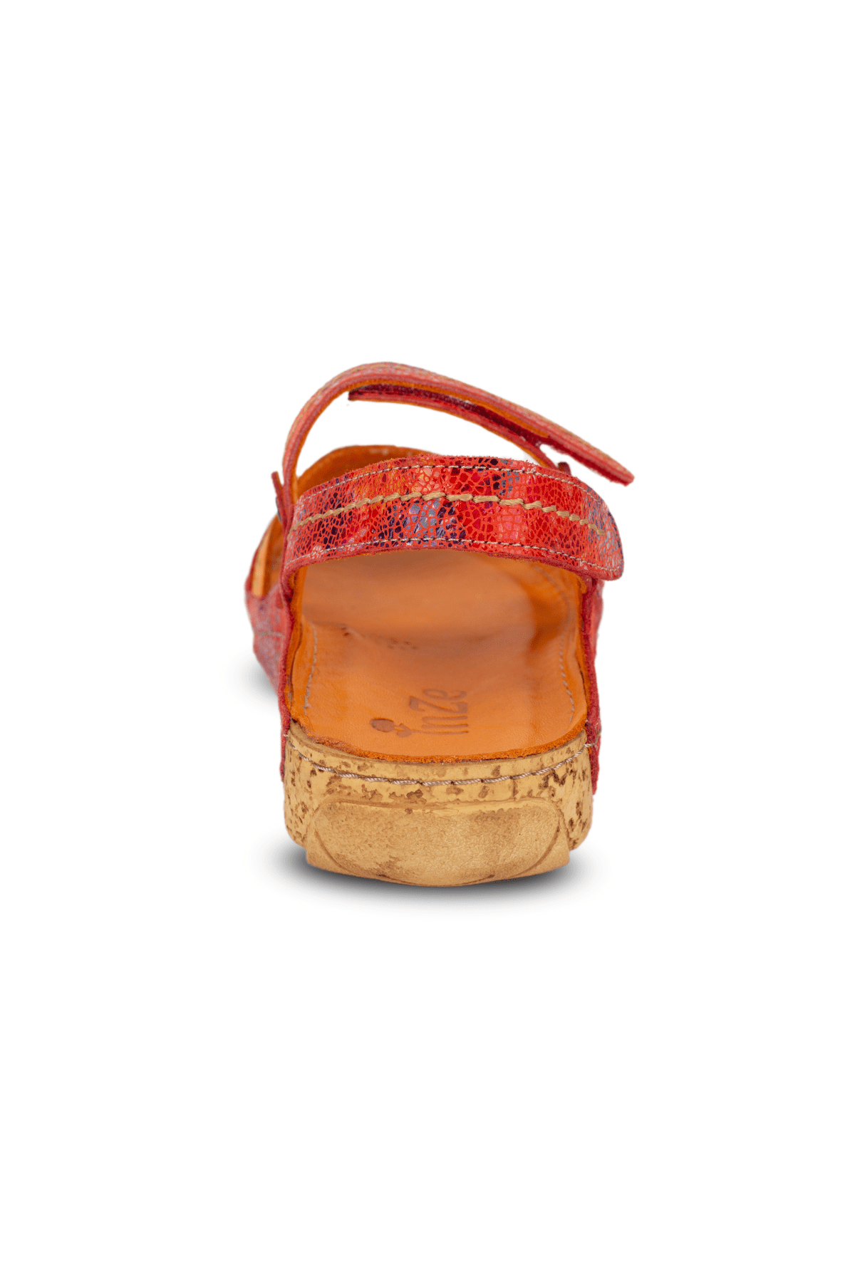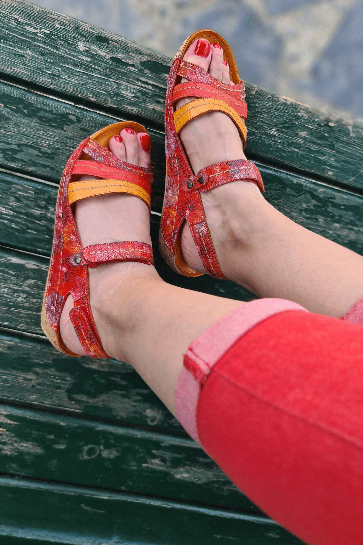 ÇOK BANTLI, İÇ DIŞ HAKİKİ DERİ, ARKA AYARLANABİLİR TOKALI,DESENLİ POLİÜRETAN MANTAR TABAN, DOLGU TOPUK.