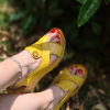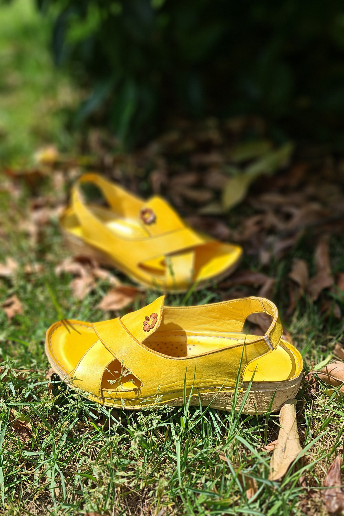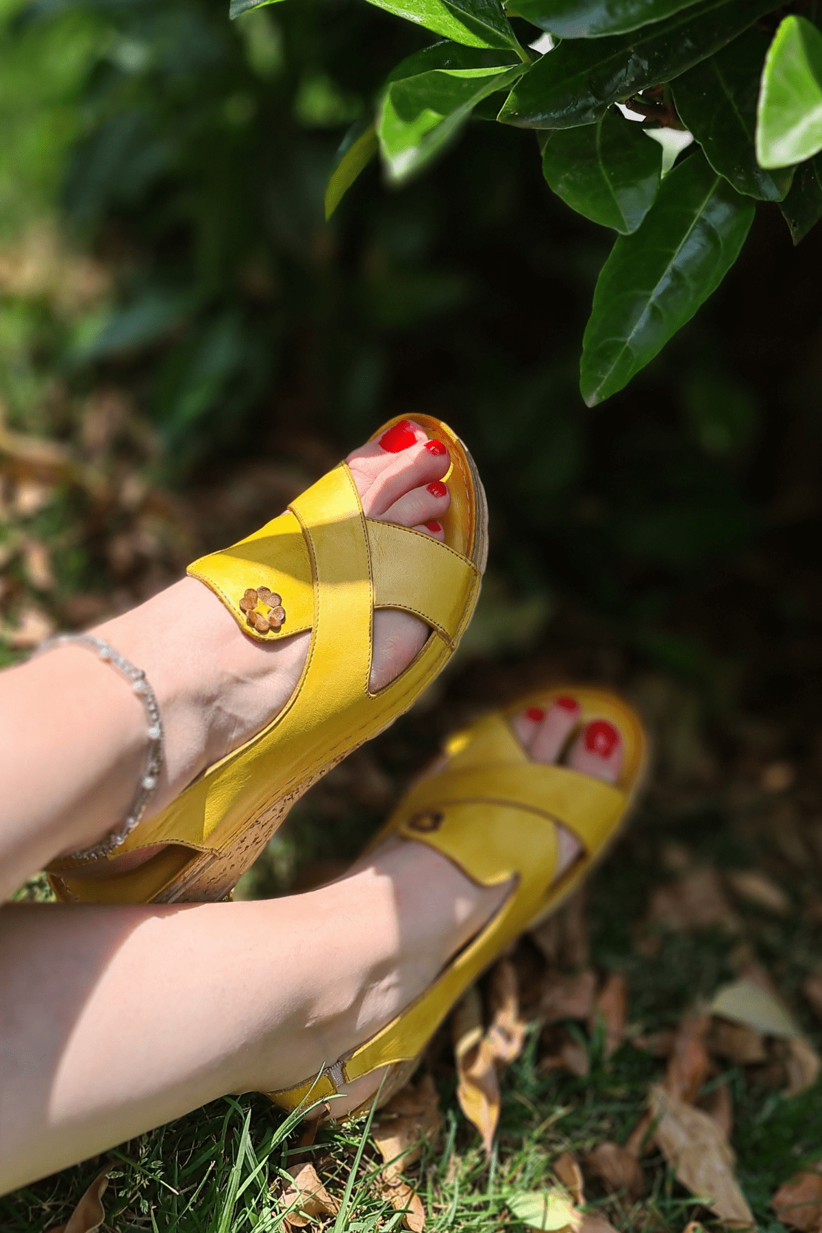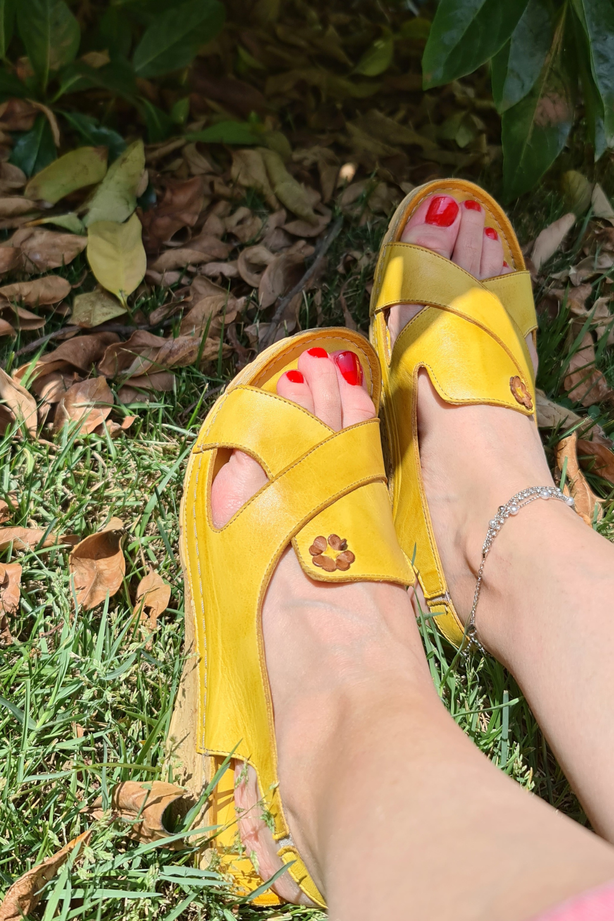 ÇAPRAZ BANTLI,ÇİÇEK DETAYLI,ARKA BİLEKTEN LASTİKLİ, İÇİ VE DIŞI HAKİKİ DERİ,DOLGU TOPUKLU,POLİÜRETAN MANTAR TABAN