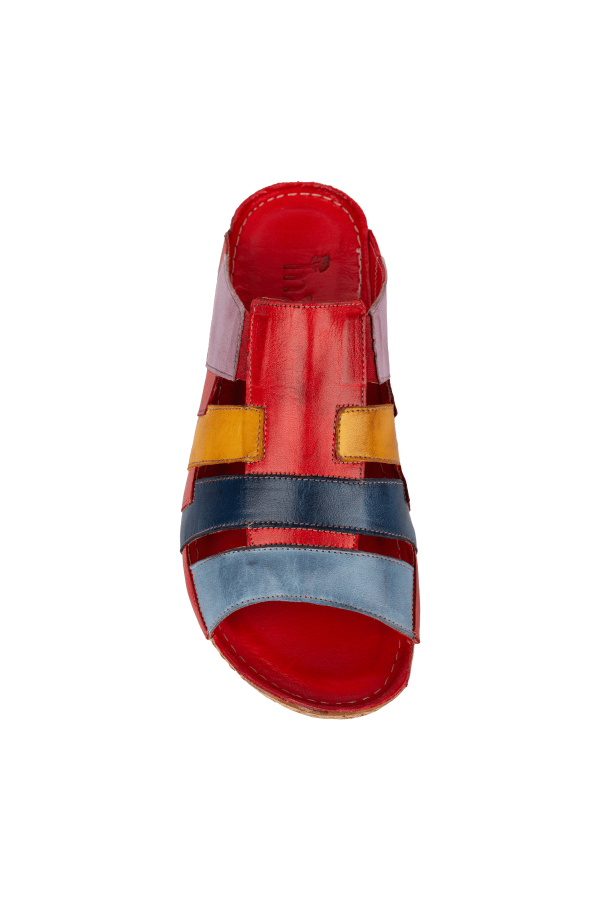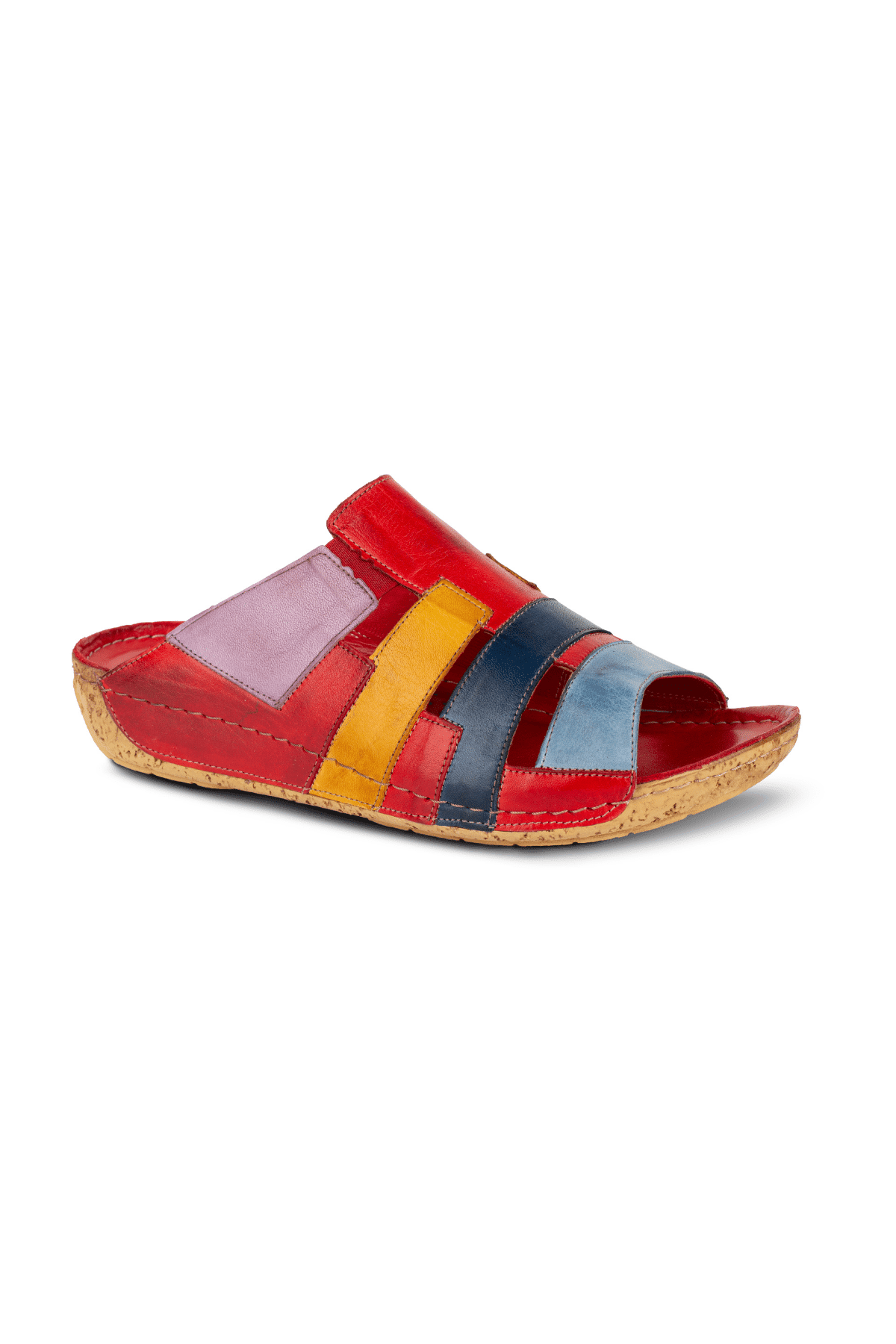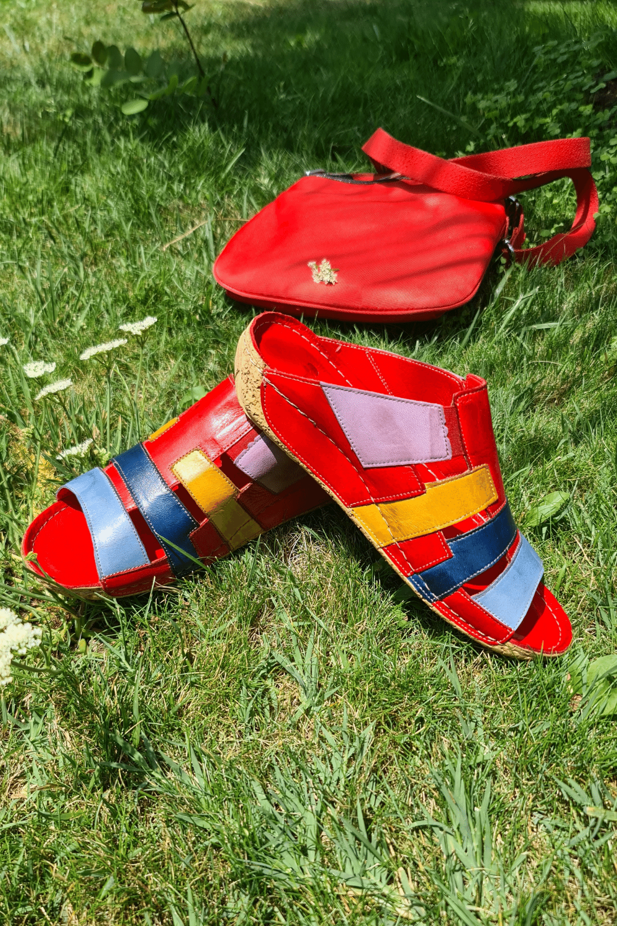 PATCHWORK DETAYLI, YANDAN LASTİKLİ, ÇOK RENKLİ, İÇİ VE DIŞI HAKİKİ DERİ,DOLGU TOPUKLU,POLİÜRETAN MANTAR TABAN