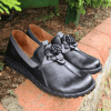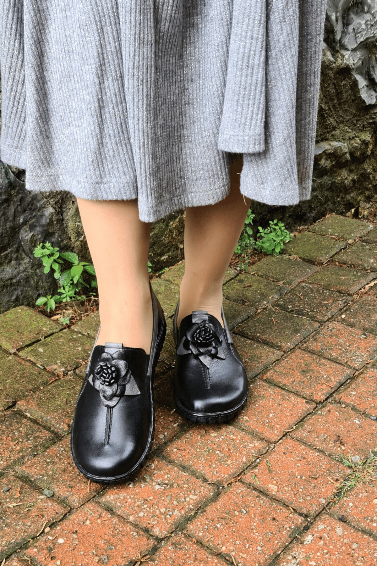 Hakiki deri, Deri Astar, Çıkartılabilir Anatomik Doğal Latex Süed Fuspet, Kauçuk Taban,Yan Lastikli, Çiçek Aksesuarlı, Topuk yüksekliği 2cm.