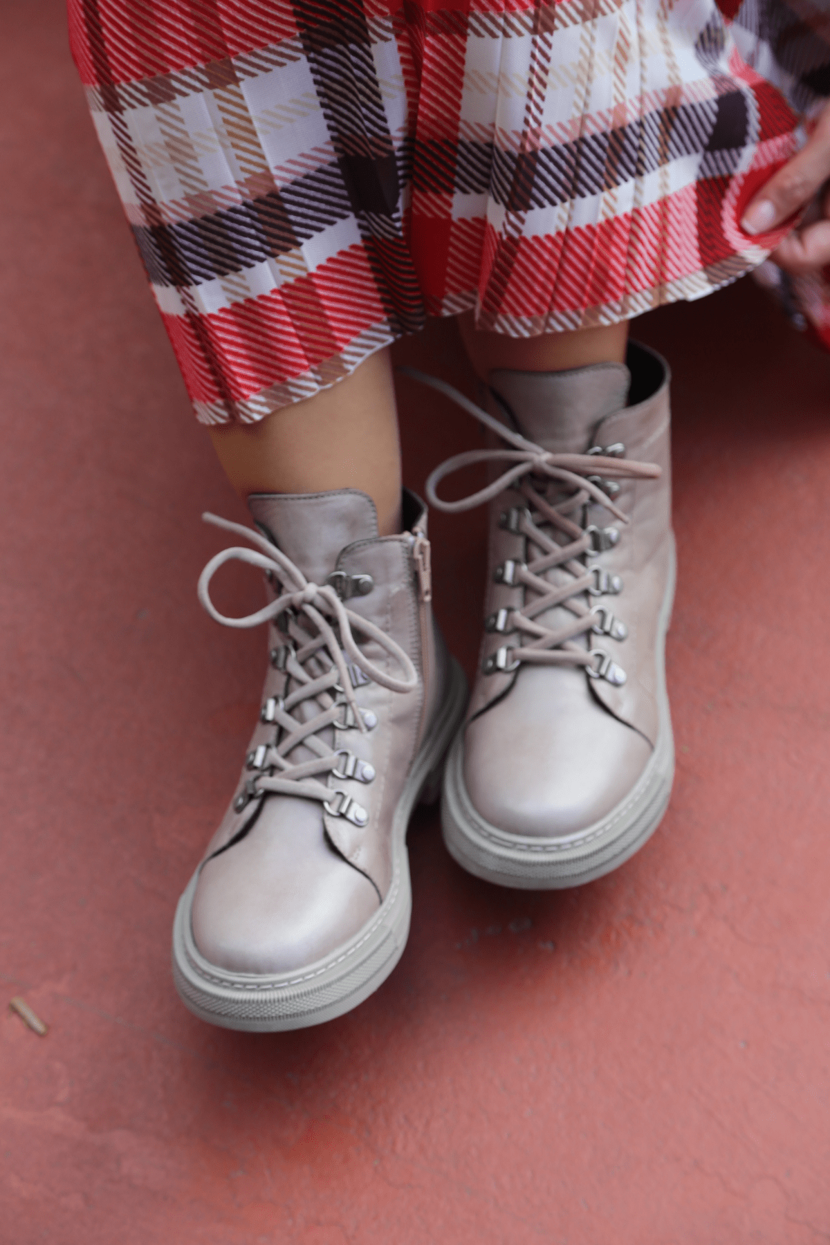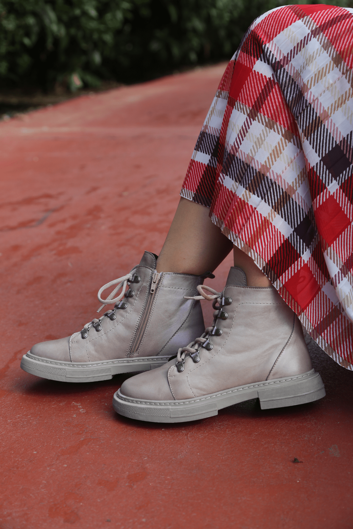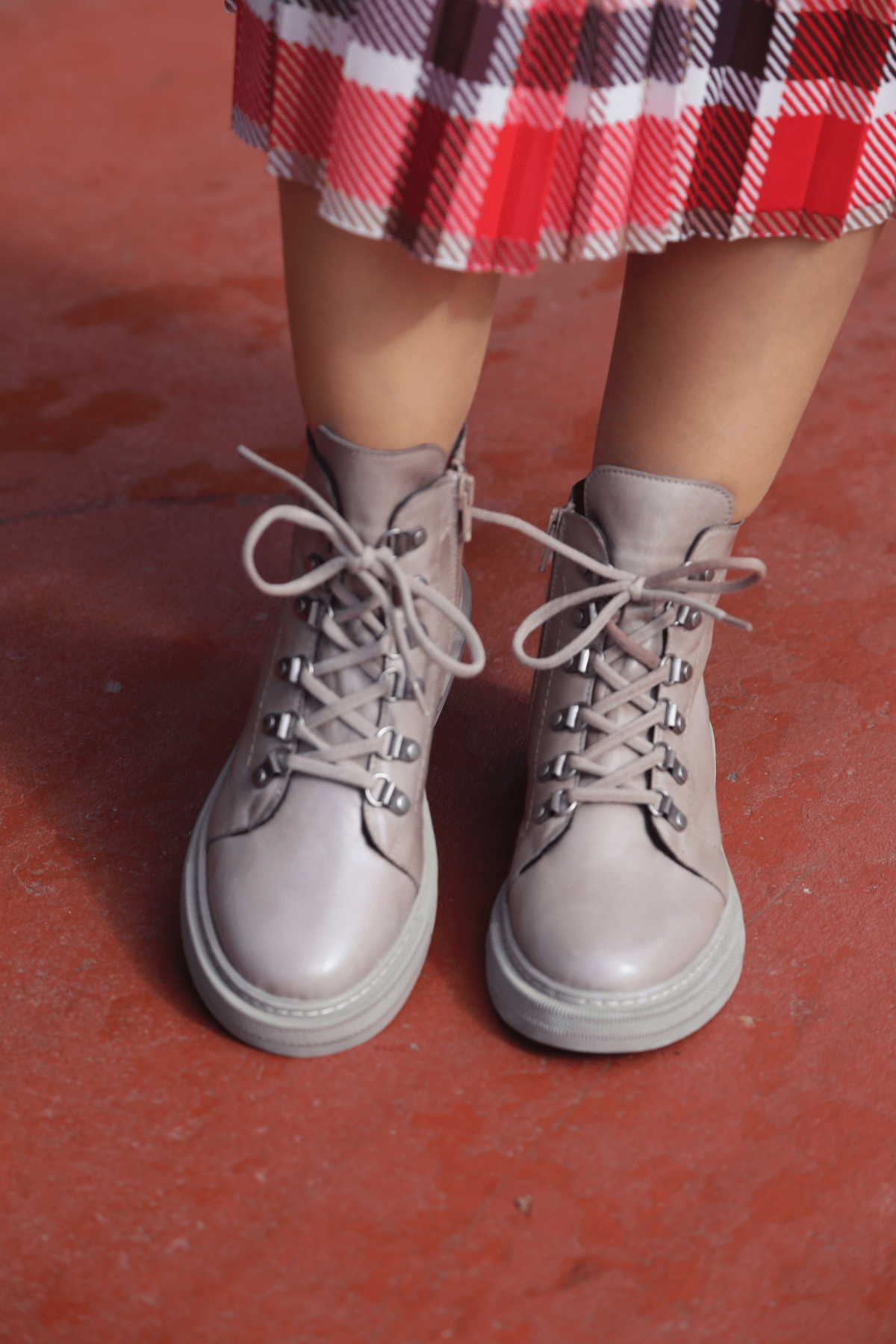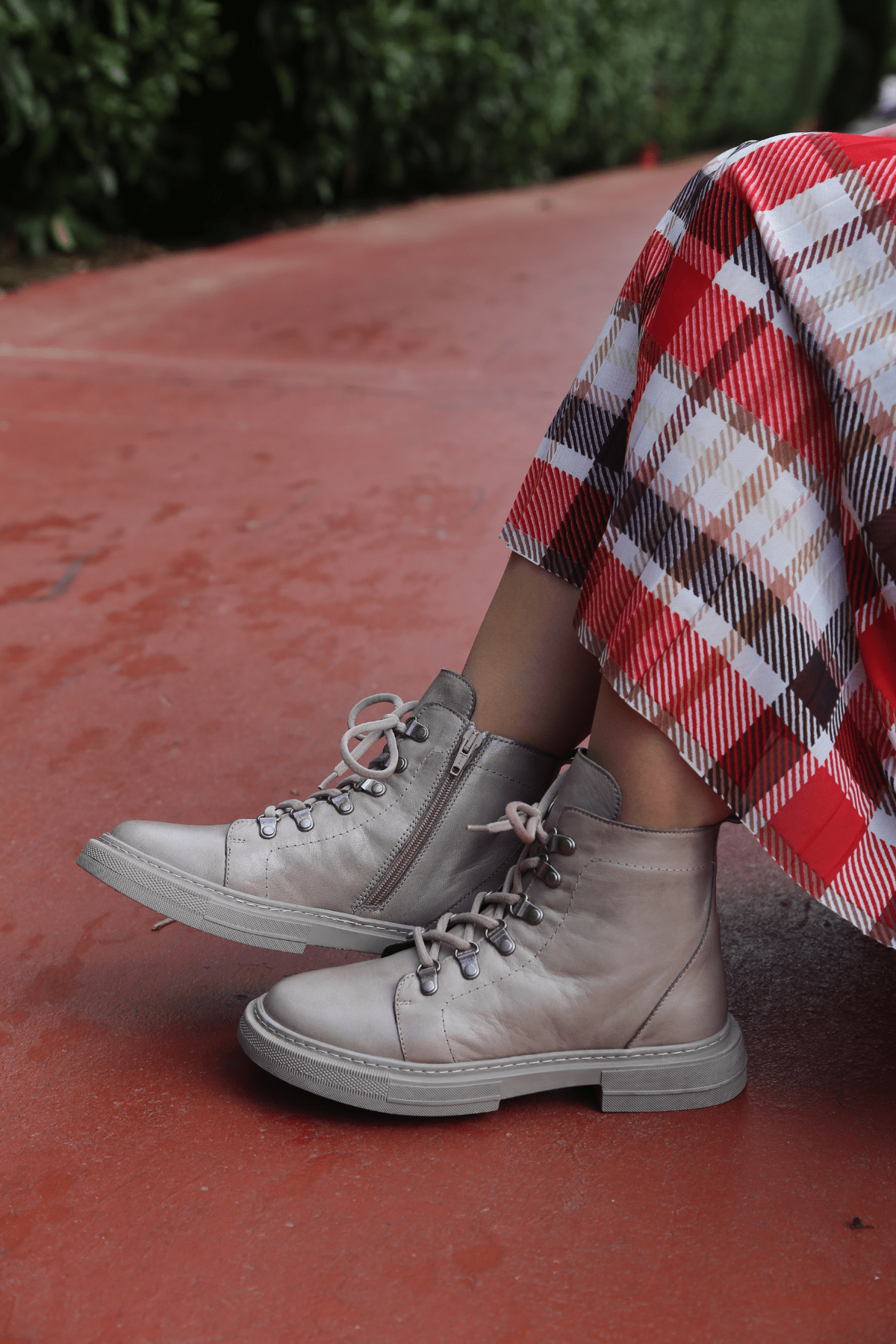 Hakiki deri bot, lastik bağcıklı, yan fermuarlı, kauçuk taban, çıkarılabilir microfiber lateks fuspet
