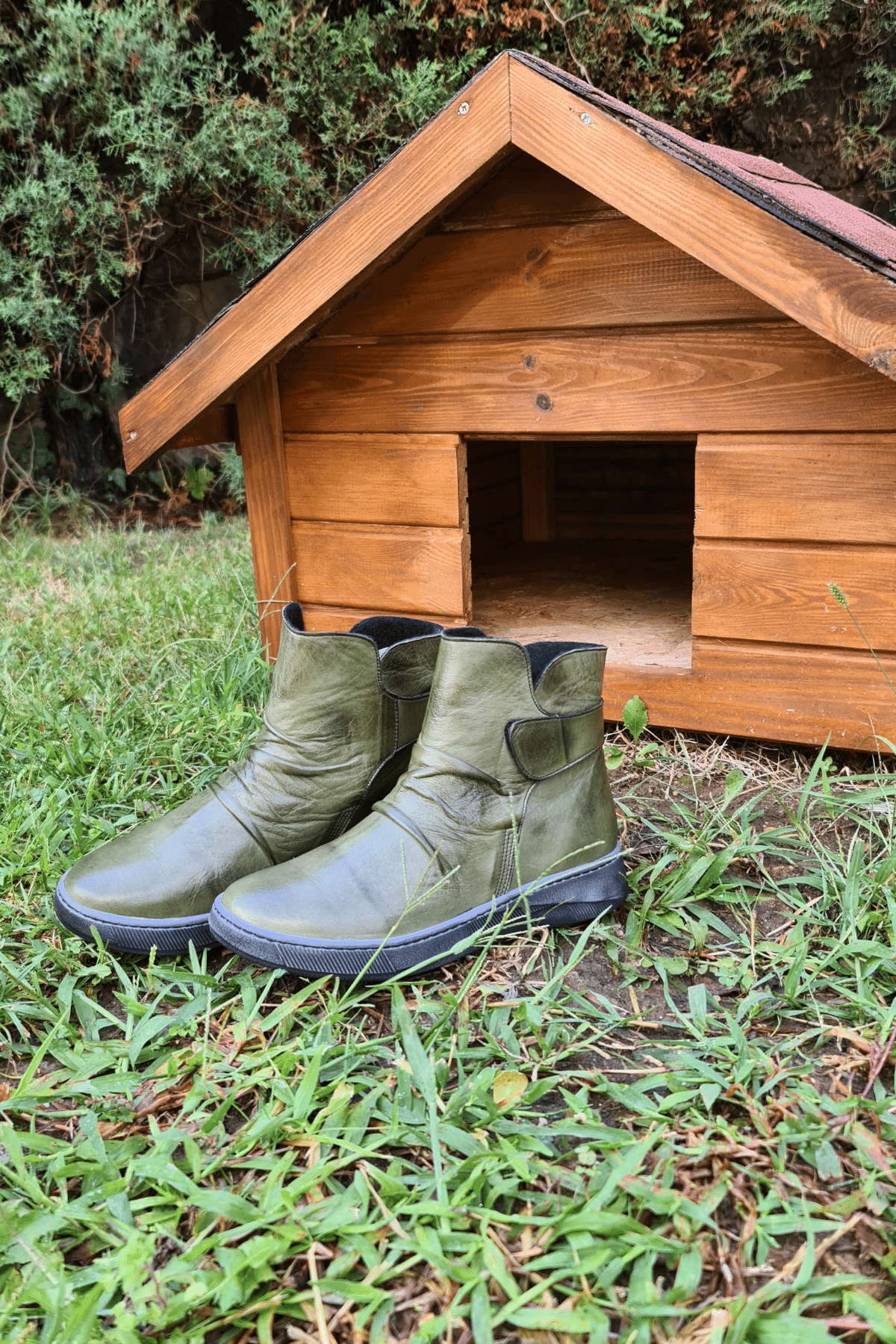 Hakiki deri, Sıcak Keçe Astar, Çıkartılabilir Anatomik Doğal Latex Süed Fuspet, Kauçuk Taban,Yan Fermuarlı, Patchwork Detaylı, Topuk yüksekliği 2cm.