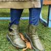 Hakiki deri, Sıcak Keçe Astar, Çıkartılabilir Anatomik Doğal Latex Süed Fuspet, Termo Taban,Yan fermuarlı, lastik bağcıklı, çiçek toka detaylı, Topuk yüksekliği 2cm.