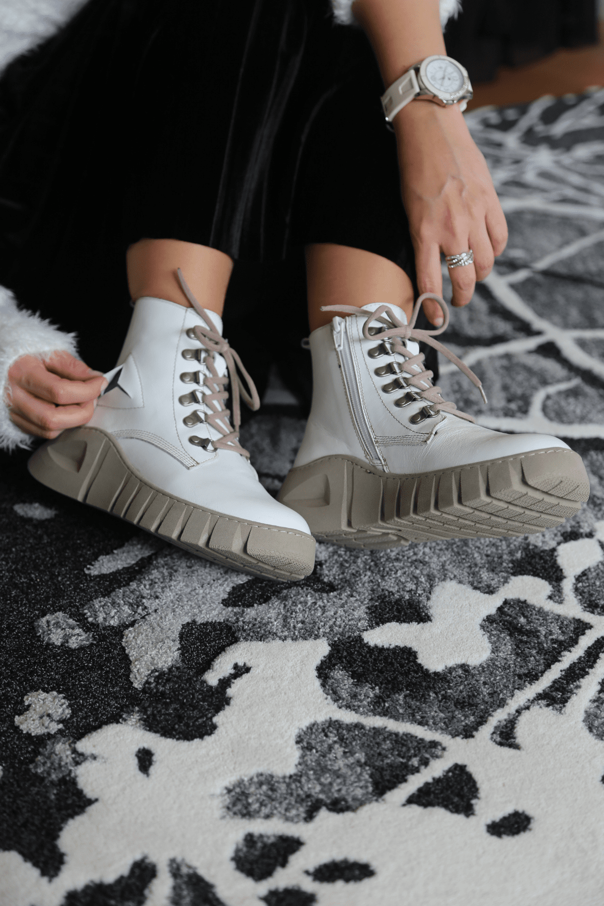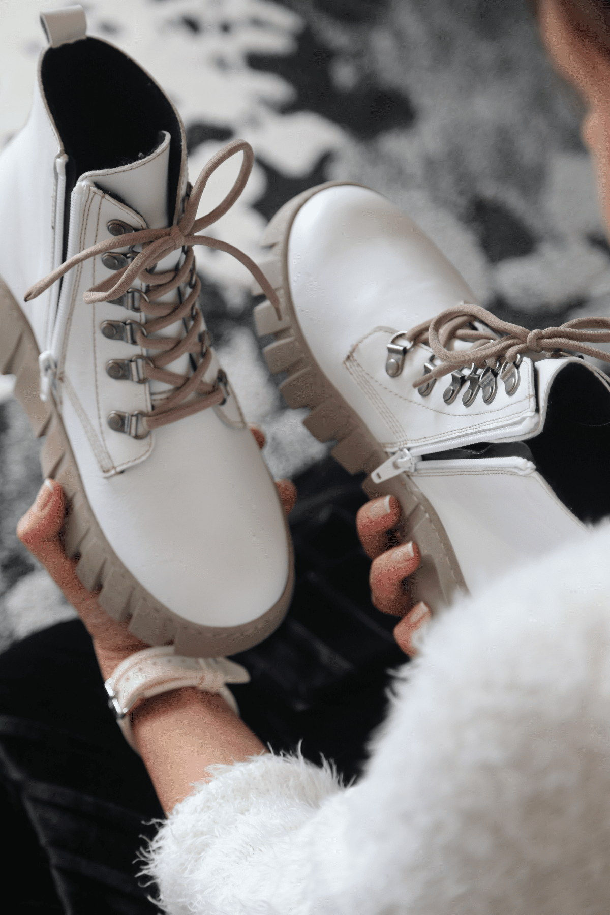 Hakiki deri bot, lastik bağcıklı, yan fermuarlı, yarma detaylı, light termo taban, çıkarılabilir microfiber lateks fuspet