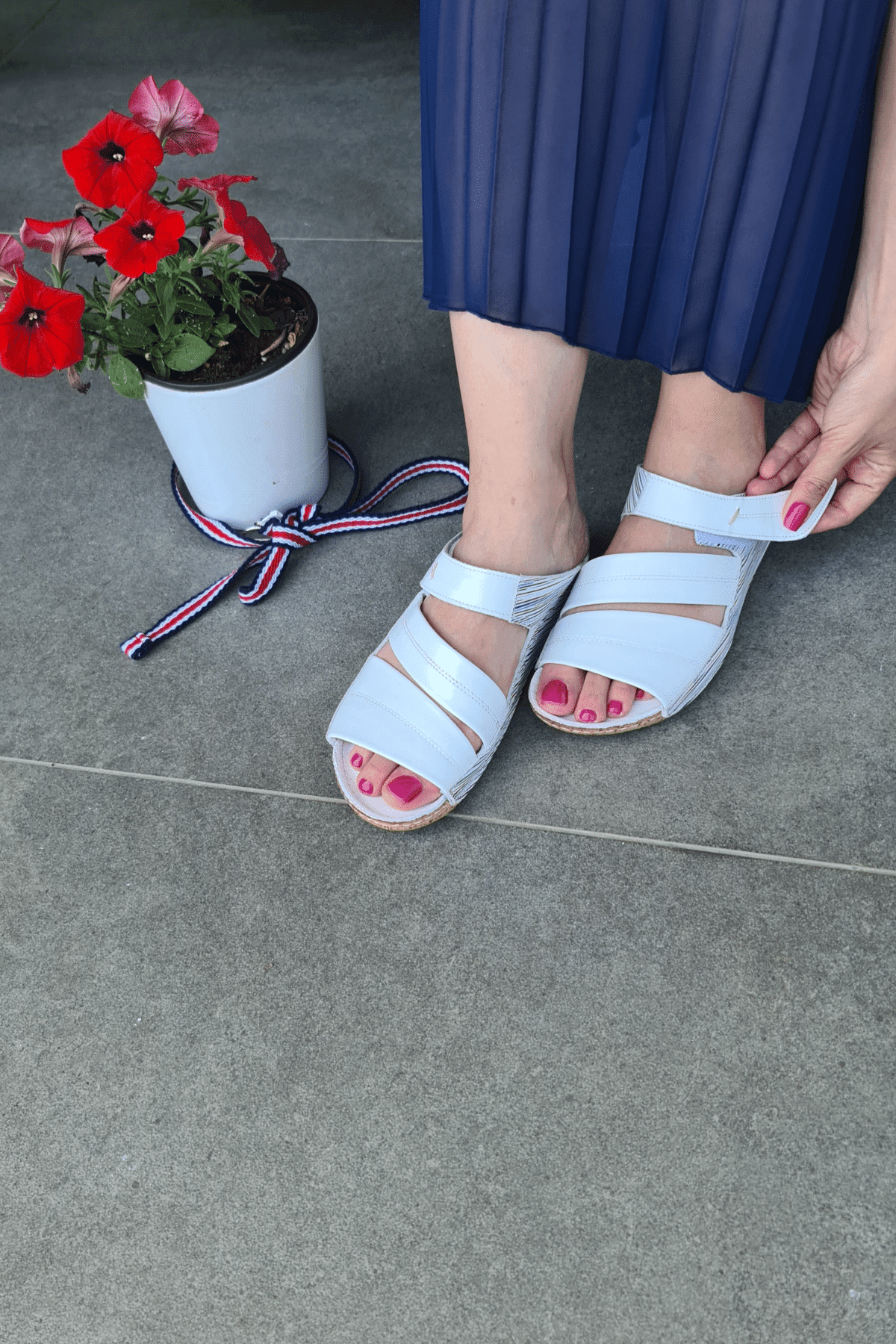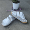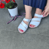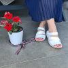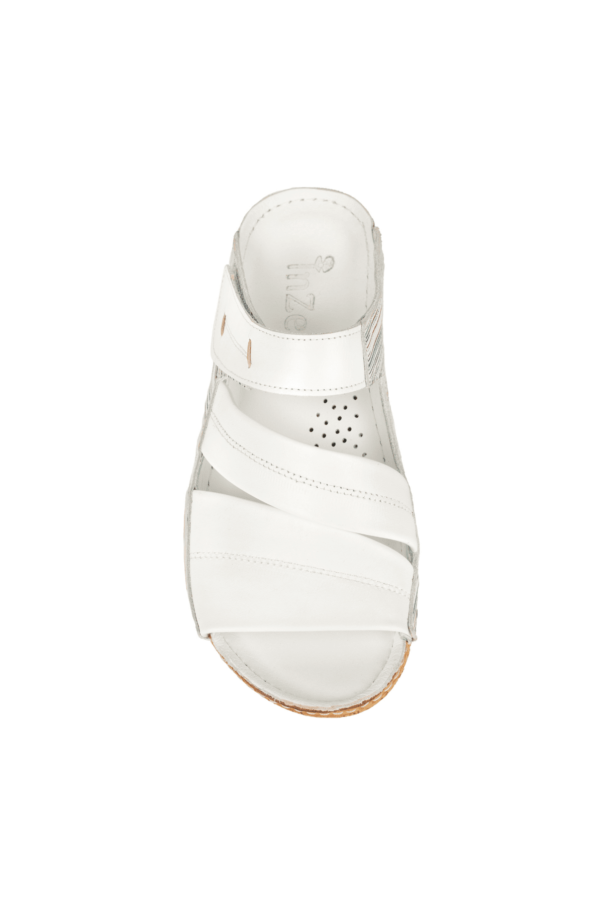 Çiçek detaylı, mantar poliüretan taban, iç dış hakiki deri.
