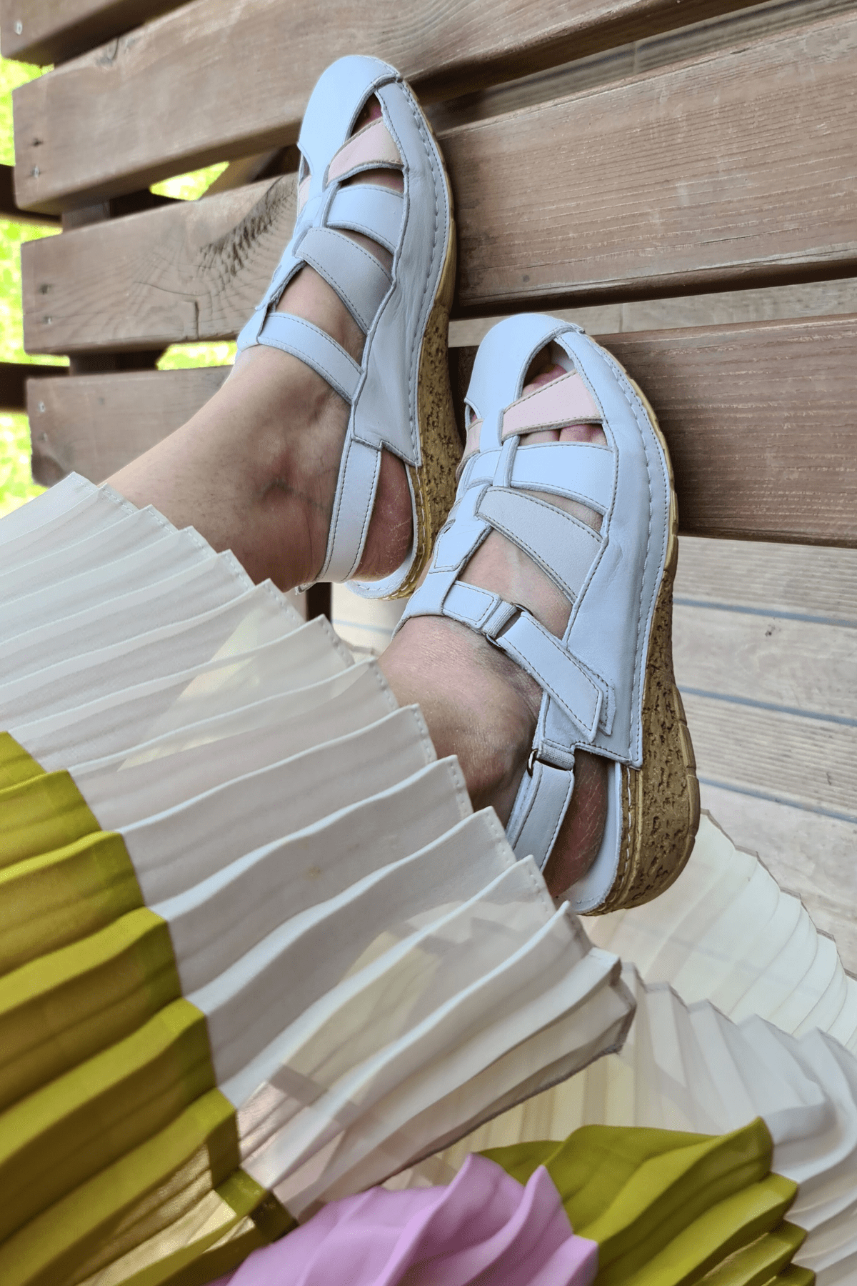 İÇİ VE DIŞI HAKİKİ DERİ, YANDAN VE BİLEKLTEN ÇİFT CIRTLI,3 BANT DETAYLI,DOLGU TOPUKLU,POLİÜRETAN MANTAR TABAN