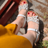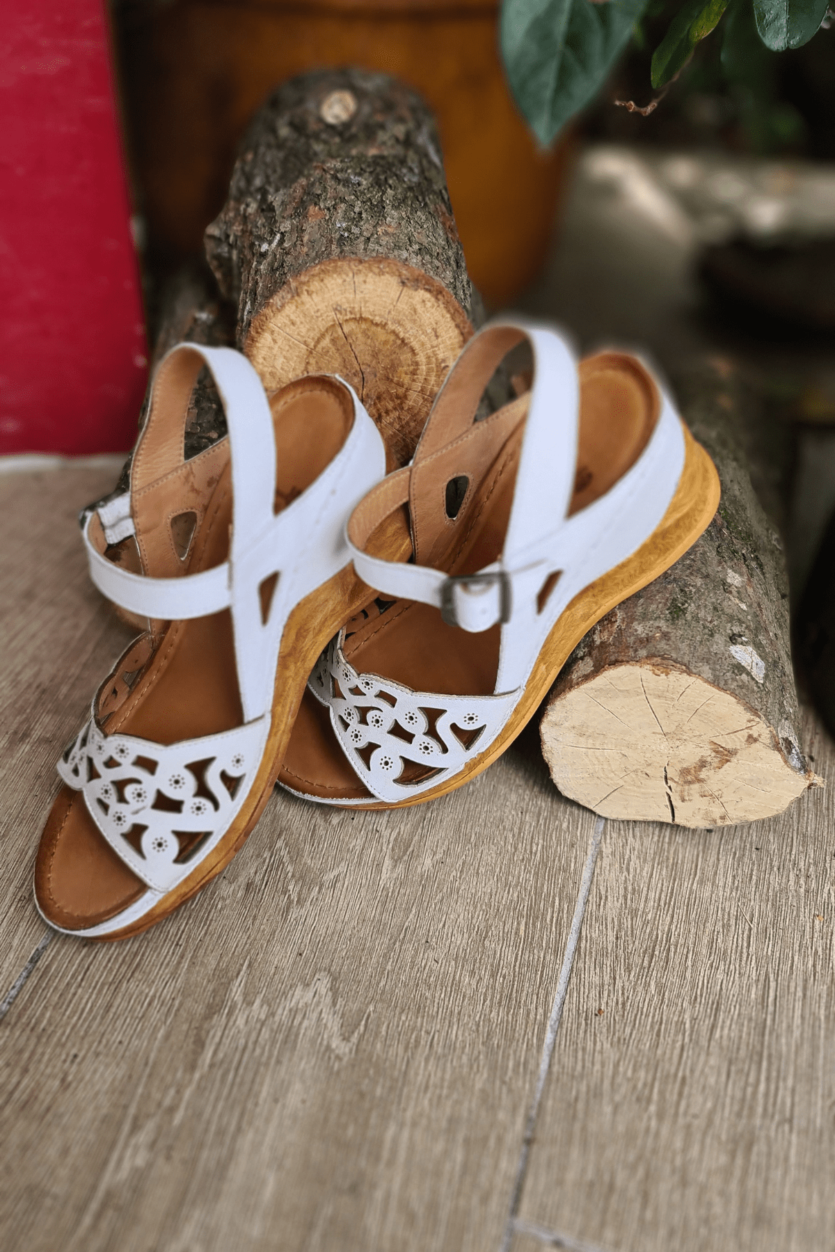 DERİ ÖRGÜLÜ, İÇ DIŞ HAKİKİ DERİ, ANTİK TOKA DETAYLI, YAN CIRT BANTLI, POLİÜRETAN MANTAR TABAN.