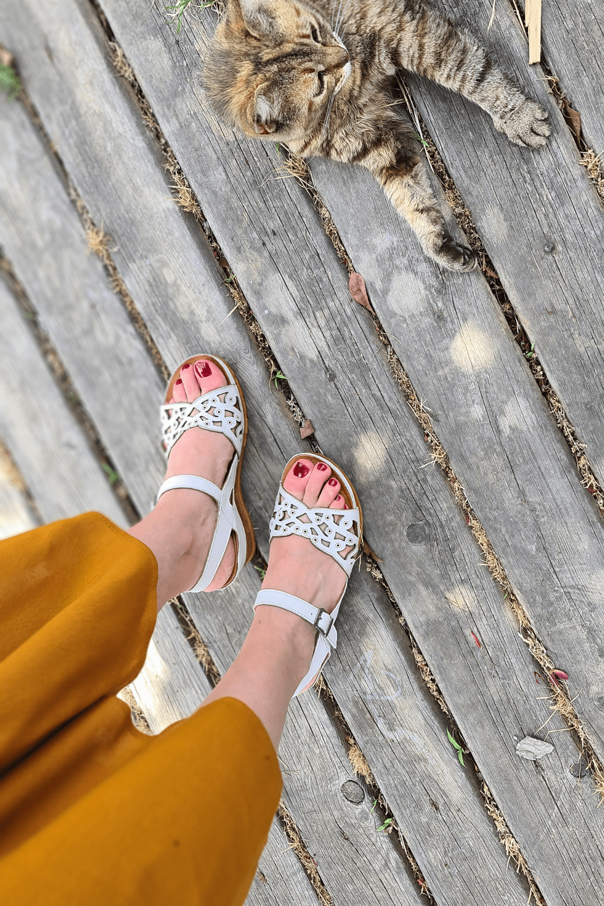 ÇOK BANTLI, İÇ DIŞ HAKİKİ DERİ, ARKA AYARLANABİLİR TOKALI,DESENLİ POLİÜRETAN MANTAR TABAN, DOLGU TOPUK.