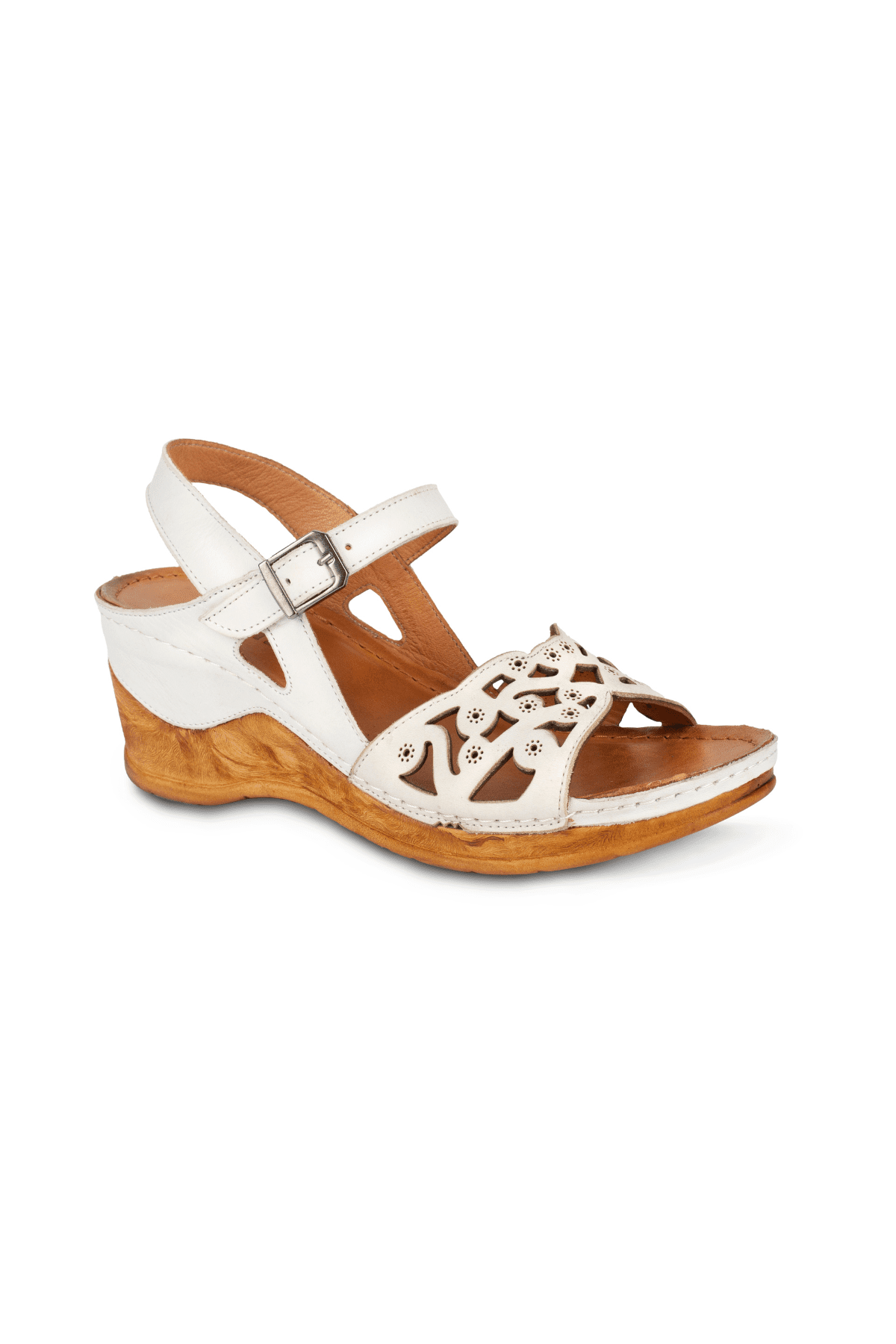 LAZER İŞLEMELİ YANDAN TOKALI, İÇİ VE DIŞI HAKİKİ DERİ,DOLGU TOPUKLU,POLİÜRETAN MANTAR TABAN