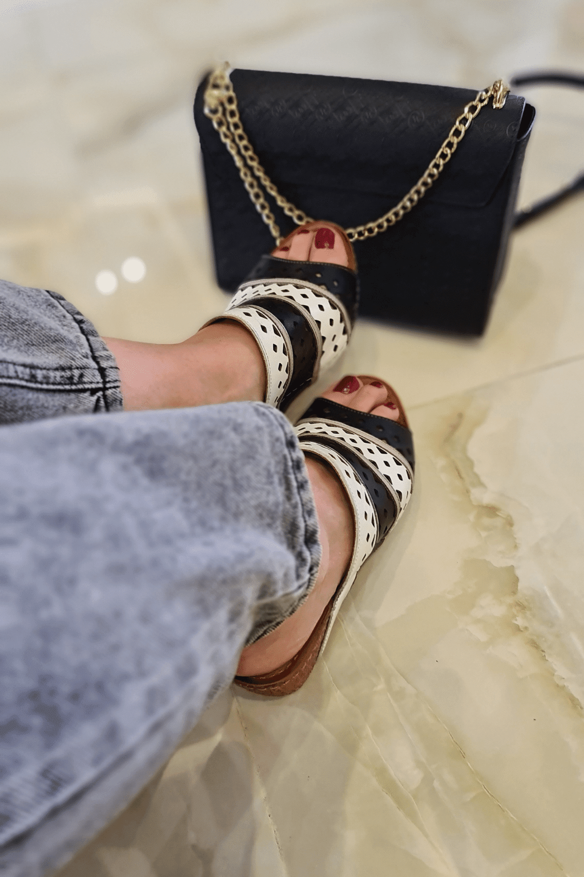 LAZER KESİM DETAYLI,ÇOK RENKLİ, İÇİ VE DIŞI HAKİKİ DERİ,DOLGU TOPUKLU,POLİÜRETAN MANTAR TABAN
