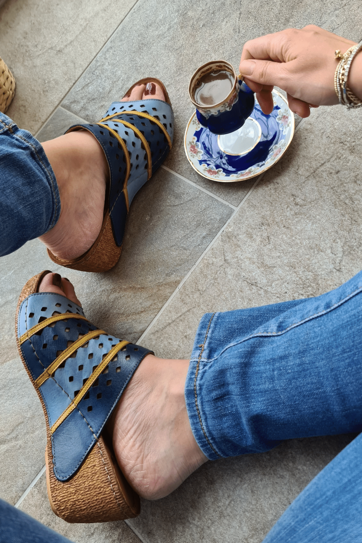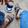 DÖRT TOKALI, TROKLU, ÇOK RENKLİ, POLİÜRETAN MANTAR TABAN, DOLGU TOPUKLU, İÇ DIŞ HAKİKİ DERİ