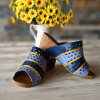 YAN CIRTLI, 3 BANTLI, BASKILI DERİ DETAYLI, İÇİ VE DIŞI HAKİKİ DERİ,DOLGU TOPUKLU,POLİÜRETAN MANTAR TABAN