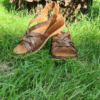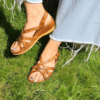 DERİ ÖRGÜLÜ, İÇ DIŞ HAKİKİ DERİ, ANTİK TOKA DETAYLI, YAN CIRT BANTLI, POLİÜRETAN MANTAR TABAN.
