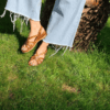 DERİ ÖRGÜLÜ, İÇ DIŞ HAKİKİ DERİ, ANTİK TOKA DETAYLI, YAN CIRT BANTLI, POLİÜRETAN MANTAR TABAN