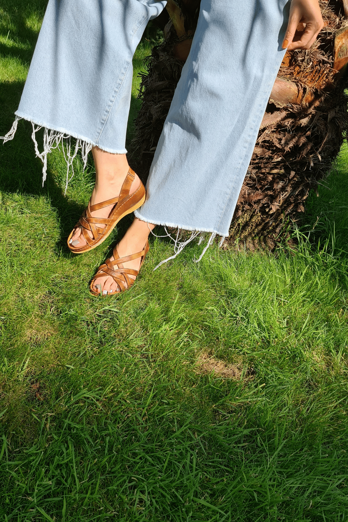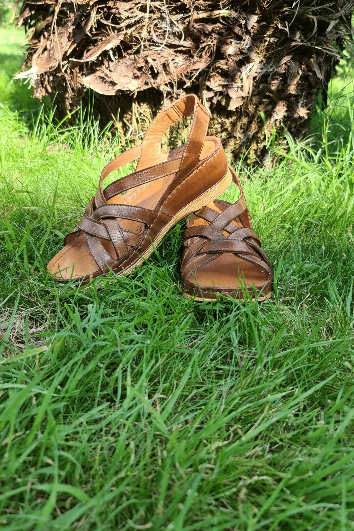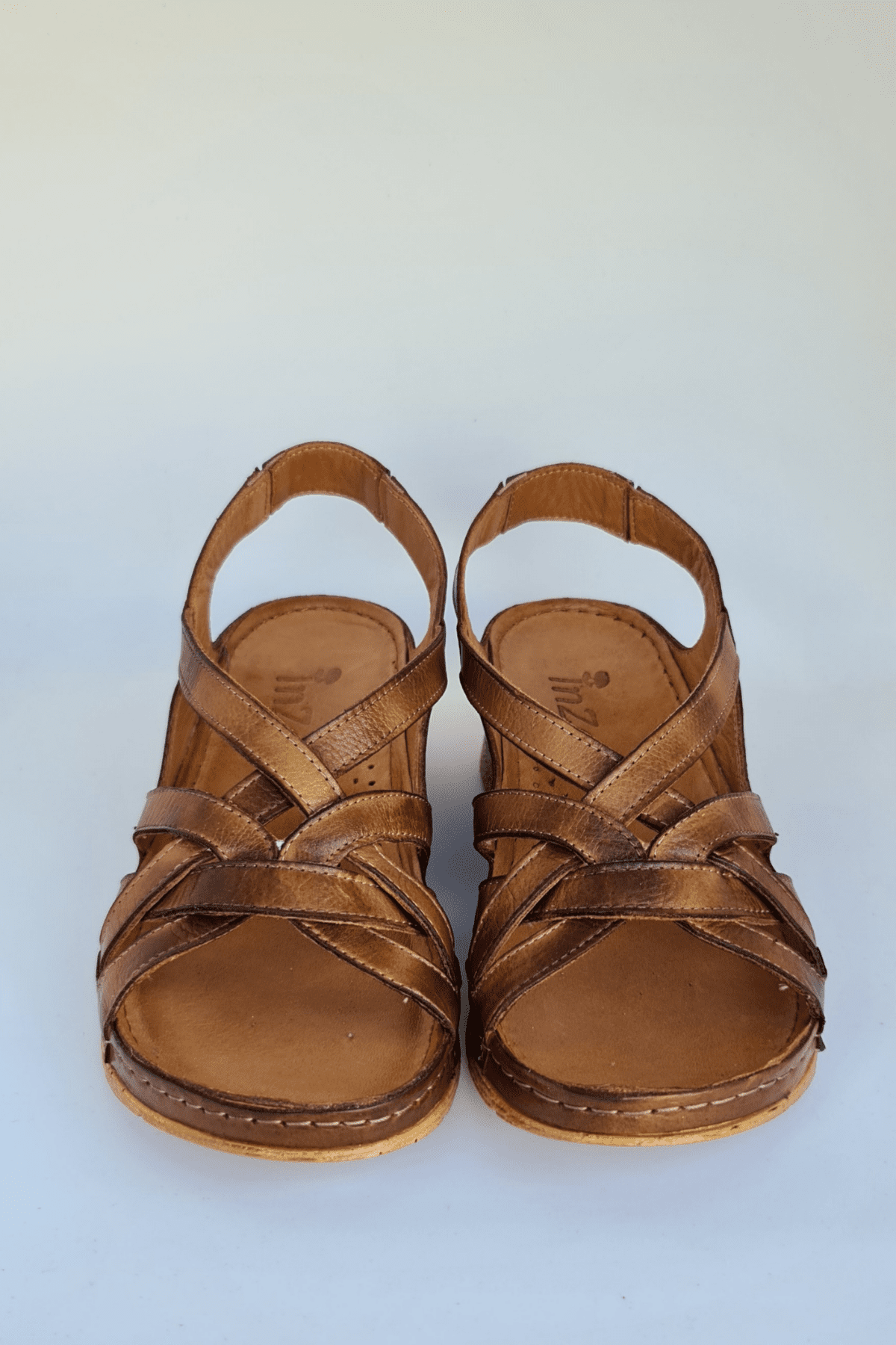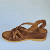 ÇOK BANTLI, İÇ DIŞ HAKİKİ DERİ, ARKA AYARLANABİLİR TOKALI,DESENLİ POLİÜRETAN MANTAR TABAN, DOLGU TOPUK.