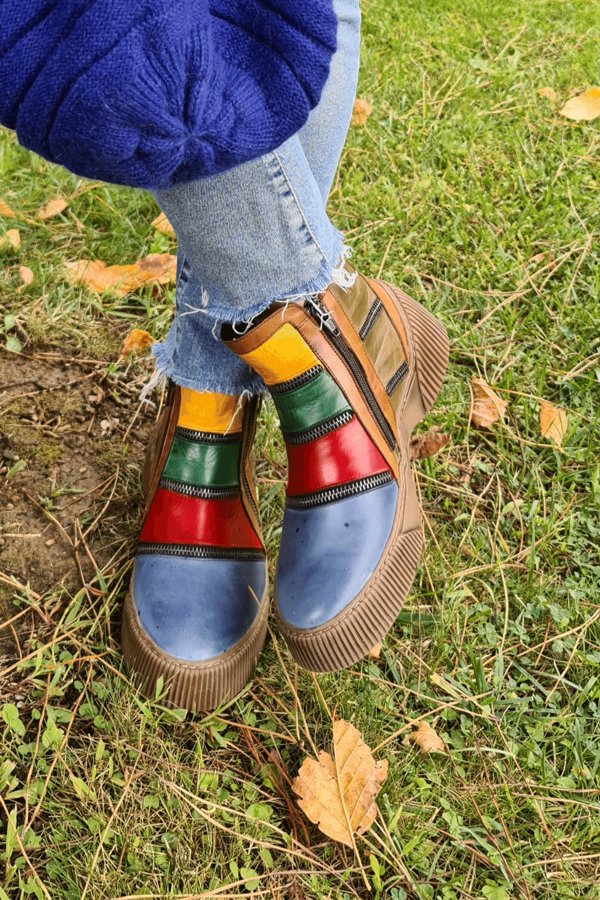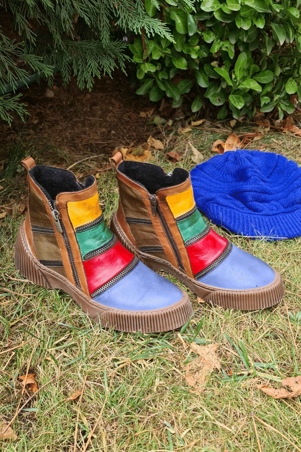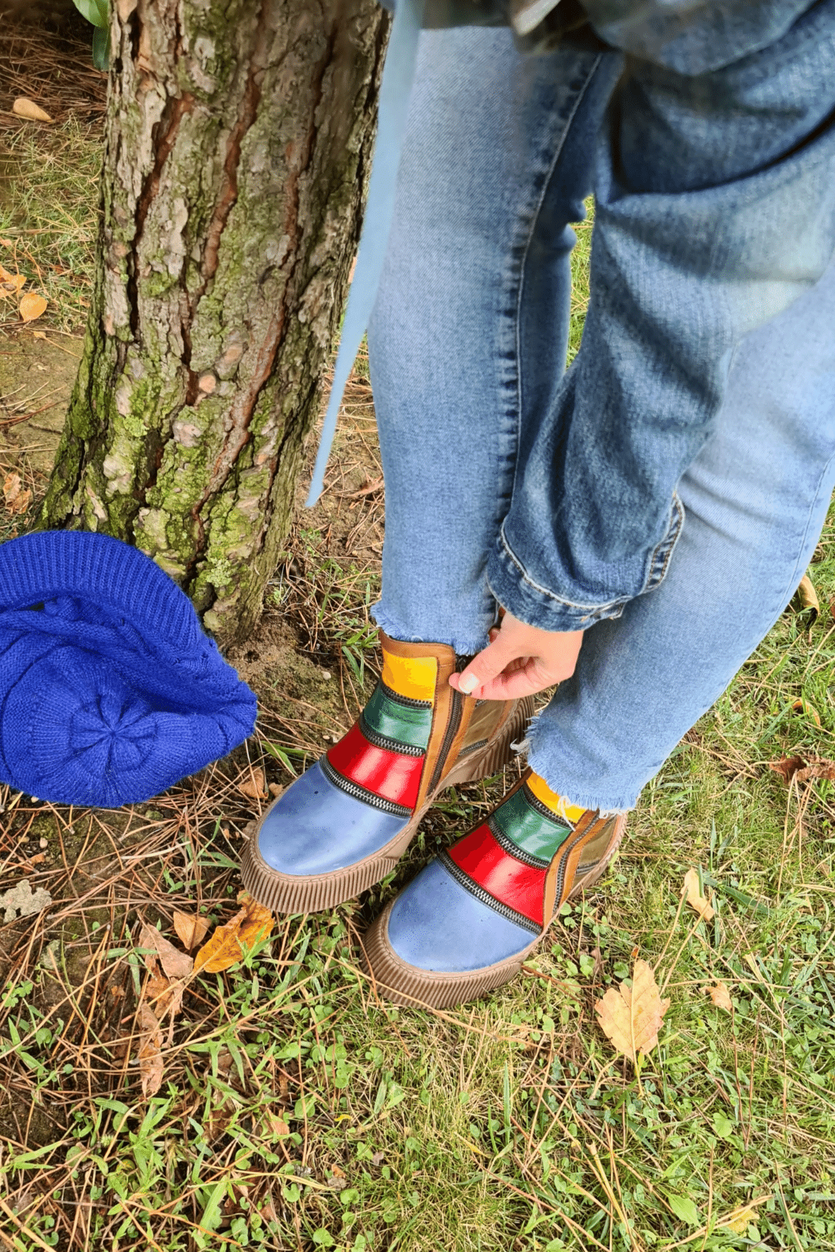 Hakiki deri, Sıcak Keçe Astar, Çıkartılabilir Anatomik Doğal Latex Süed Fuspet, Kauçuk Taban,Yan Fermuarlı, Patchwork Detaylı, Topuk yüksekliği 2cm.
