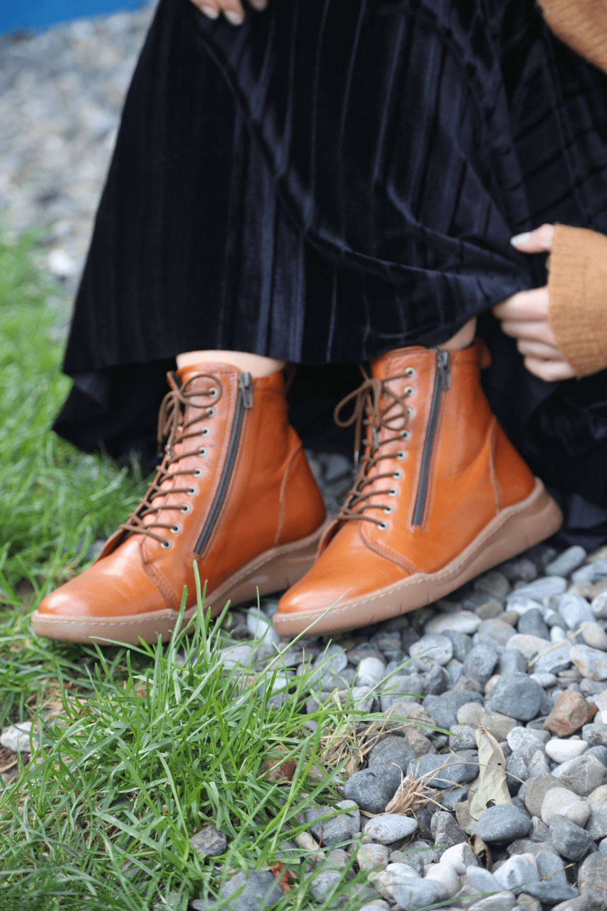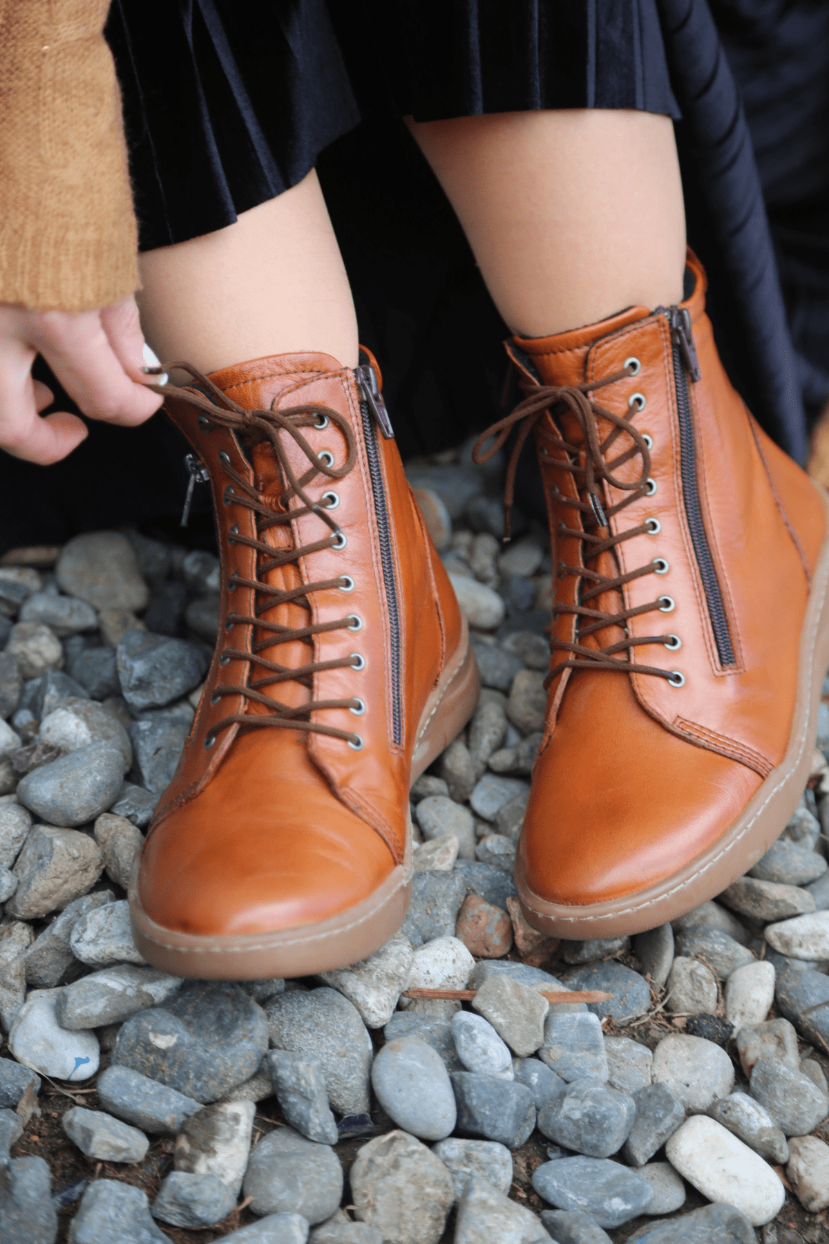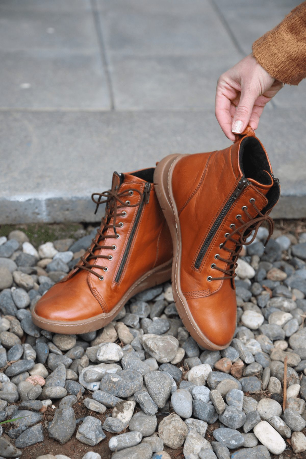 Hakiki deri bot, lastik bağcıklı, yan fermuarlı, termo taban, çıkarılabilir microfiber lateks fuspet