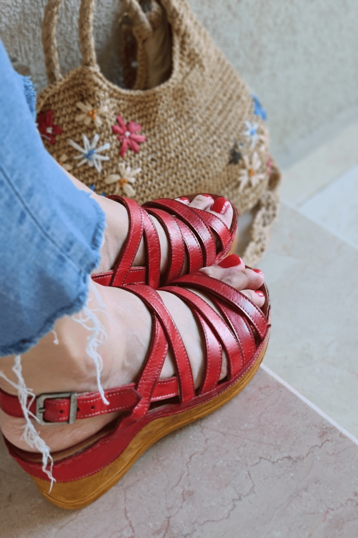 İÇ VE DIŞ HAKİKİ DERİ,SARAÇ ÖRME DETAYLI,ÖN VE YAN LASTİKLİ,YAN CIRT BANTLI, DOLGU TOPUKLU,POLİÜRETAN MANTAR TABAN