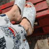 YAN CIRTLI, 3 BANTLI, BASKILI DERİ DETAYLI, İÇİ VE DIŞI HAKİKİ DERİ,DOLGU TOPUKLU,POLİÜRETAN MANTAR TABAN