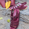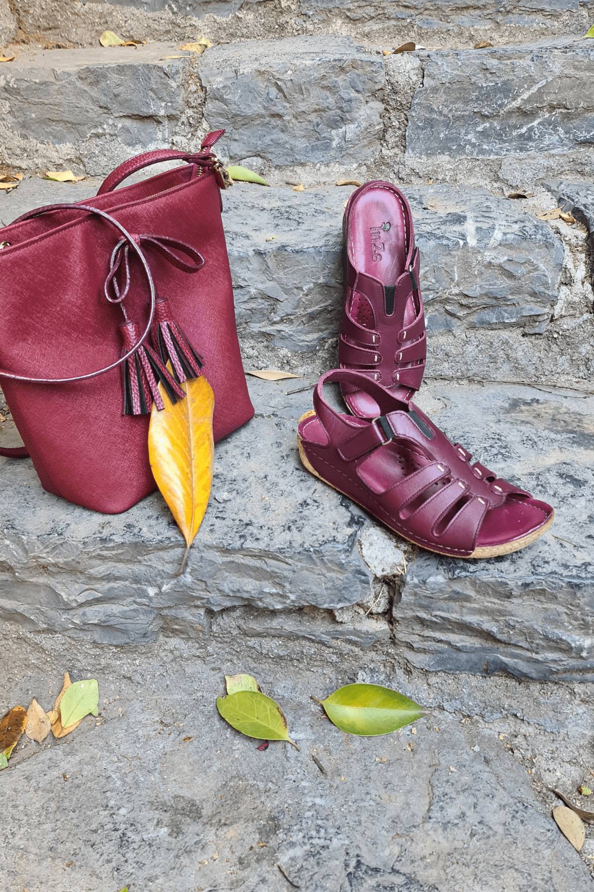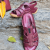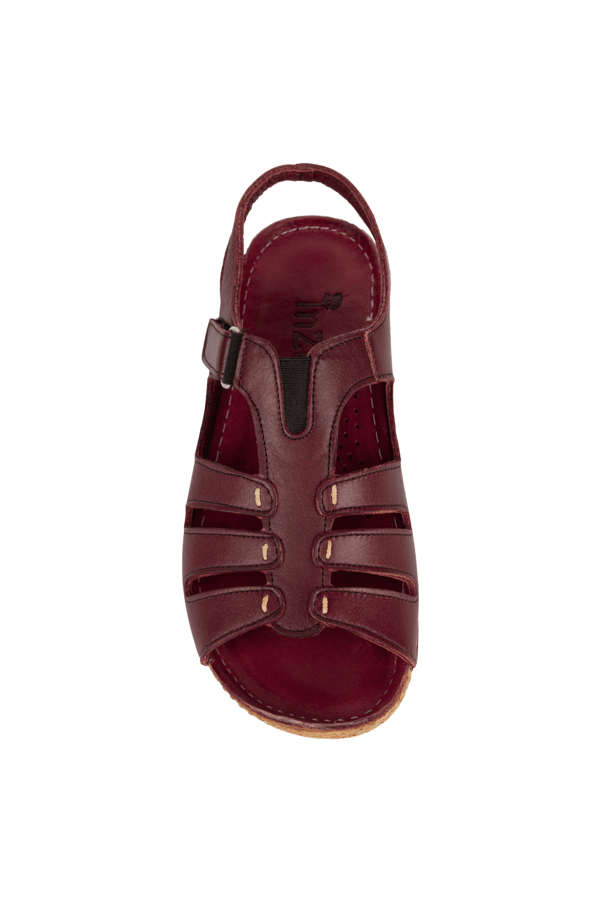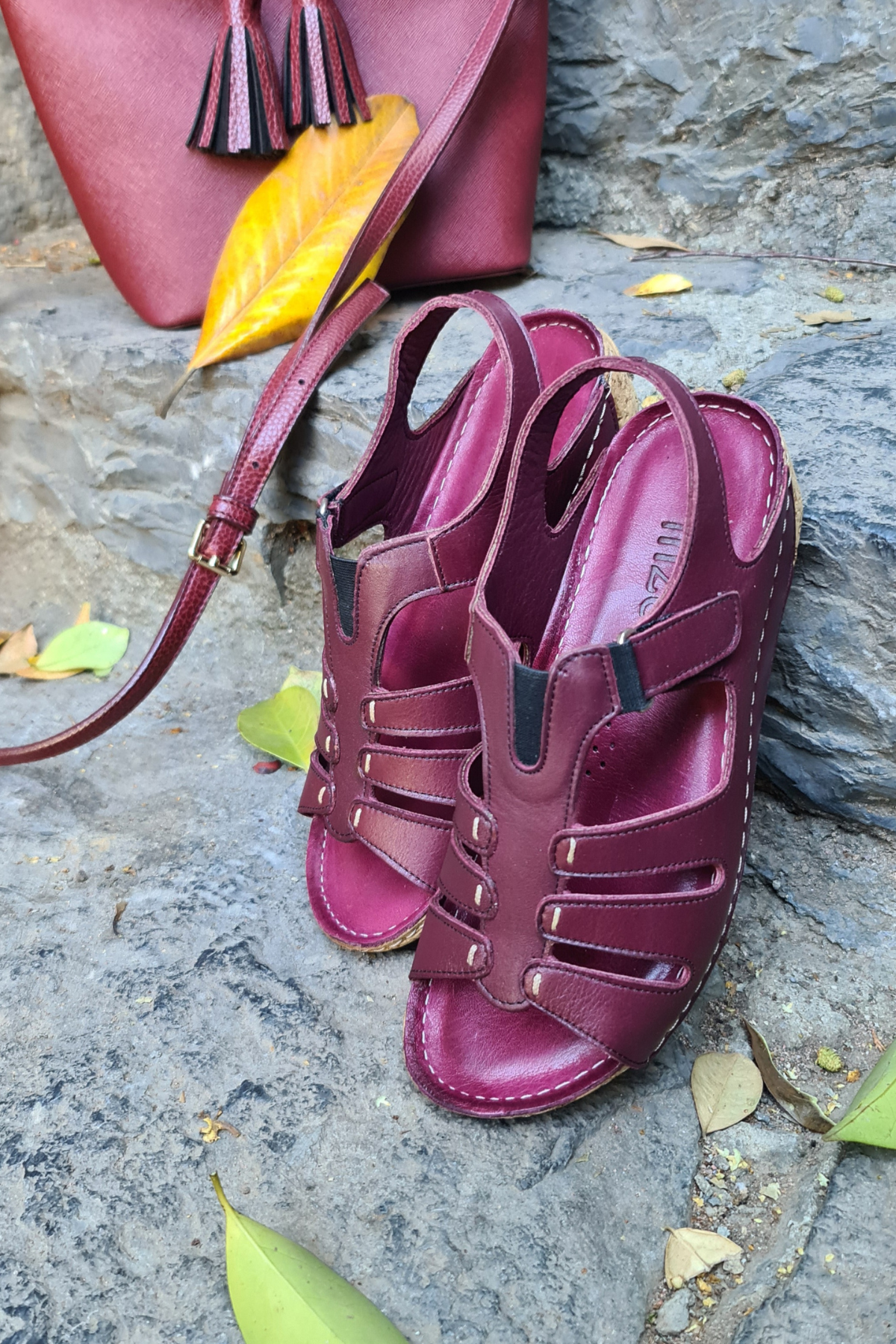 ÇOK BANTLI, İÇ DIŞ HAKİKİ DERİ, ARKA AYARLANABİLİR TOKALI,DESENLİ POLİÜRETAN MANTAR TABAN, DOLGU TOPUK.