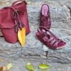 DERİ ÖRGÜLÜ, İÇ DIŞ HAKİKİ DERİ, ANTİK TOKA DETAYLI, YAN CIRT BANTLI, POLİÜRETAN MANTAR TABAN.