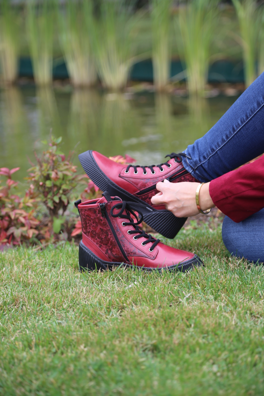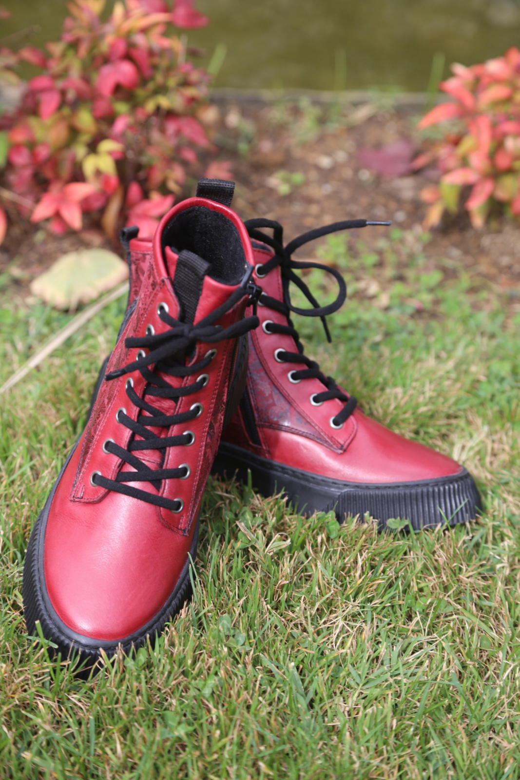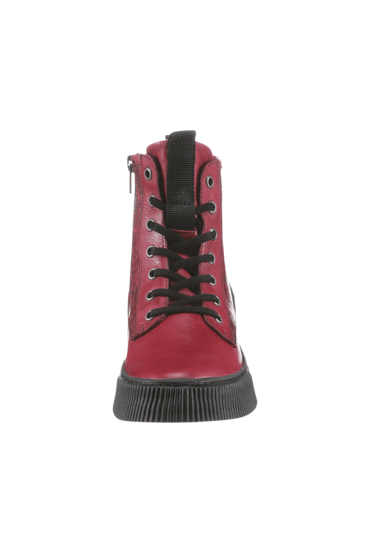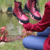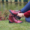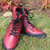 Hakiki deri bot, lastik bağcıklı, yan fermuarlı,çiçek baskılı deri detaylı, termo taban, çıkarılabilir microfiber lateks fuspet
