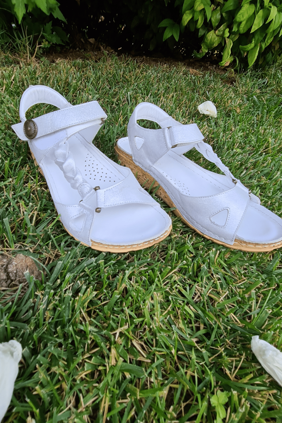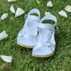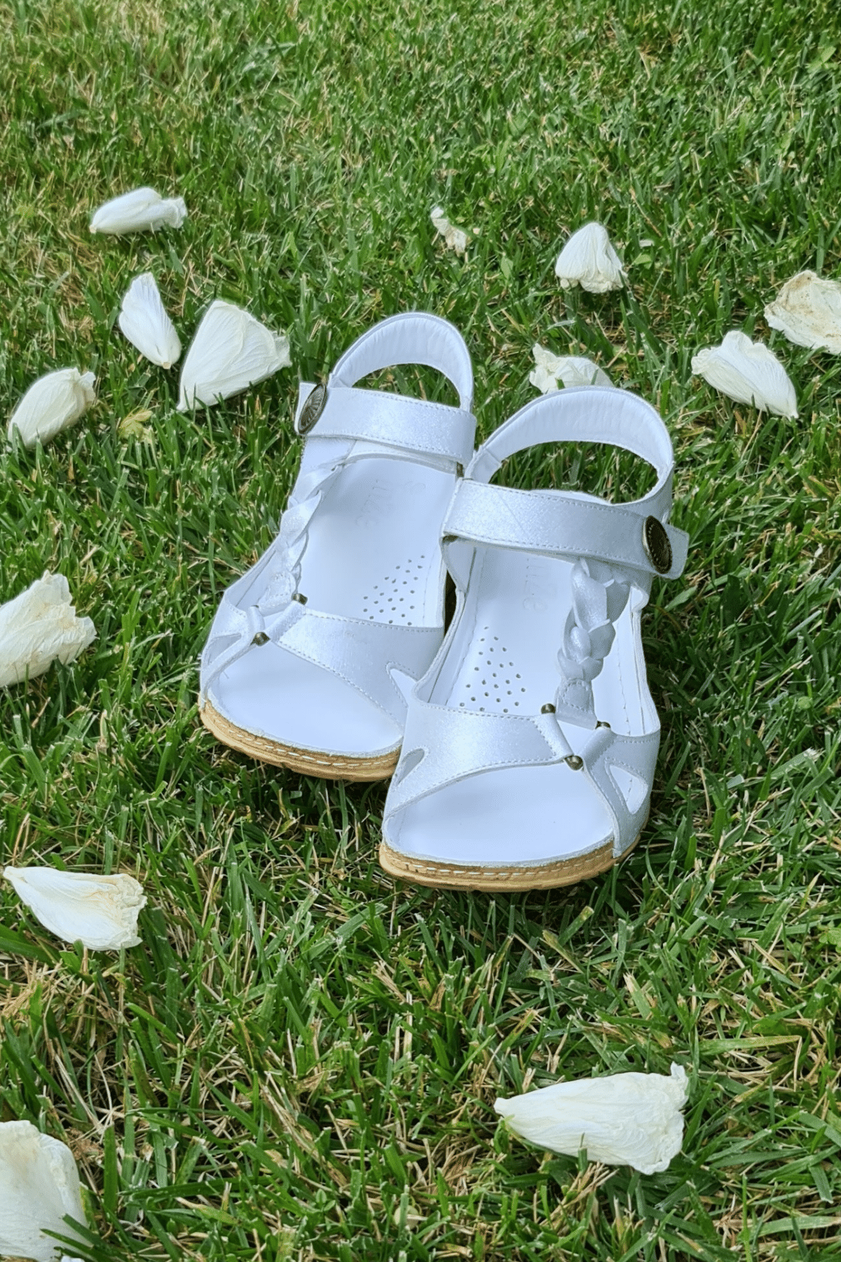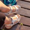 ÇOK BANTLI, İÇ DIŞ HAKİKİ DERİ, ARKA AYARLANABİLİR TOKALI,DESENLİ POLİÜRETAN MANTAR TABAN, DOLGU TOPUK.
