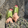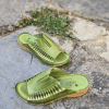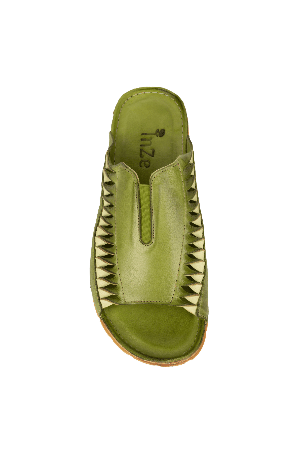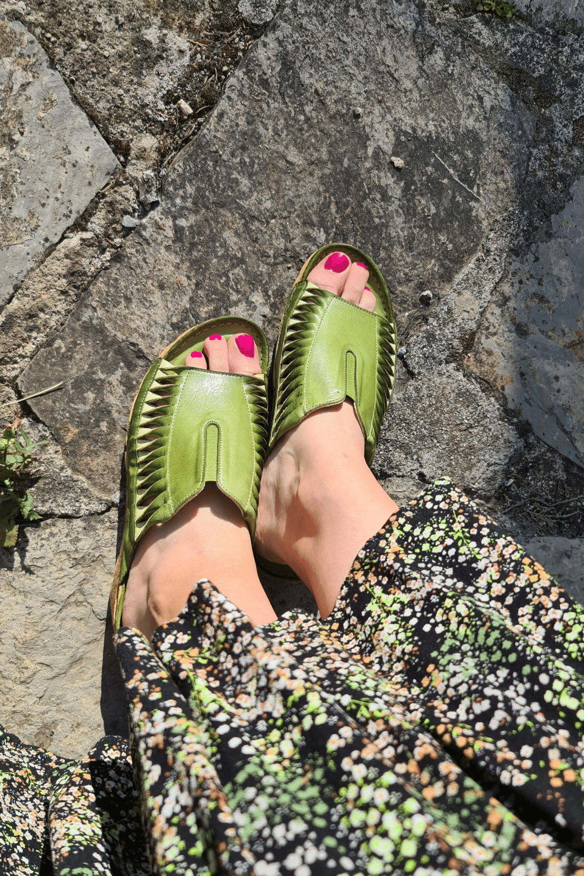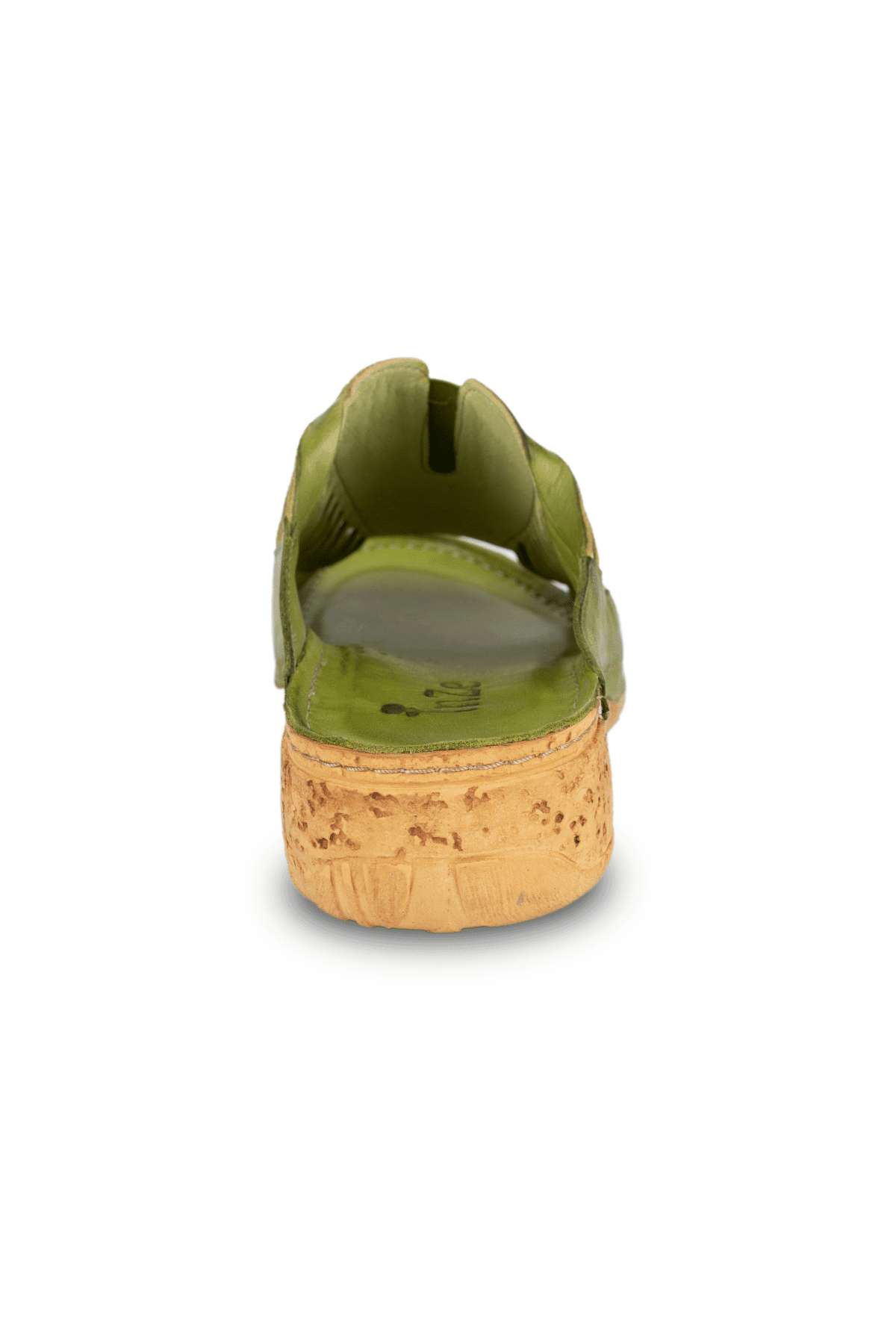 Çiçek detaylı, mantar poliüretan taban, iç dış hakiki deri.