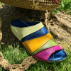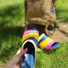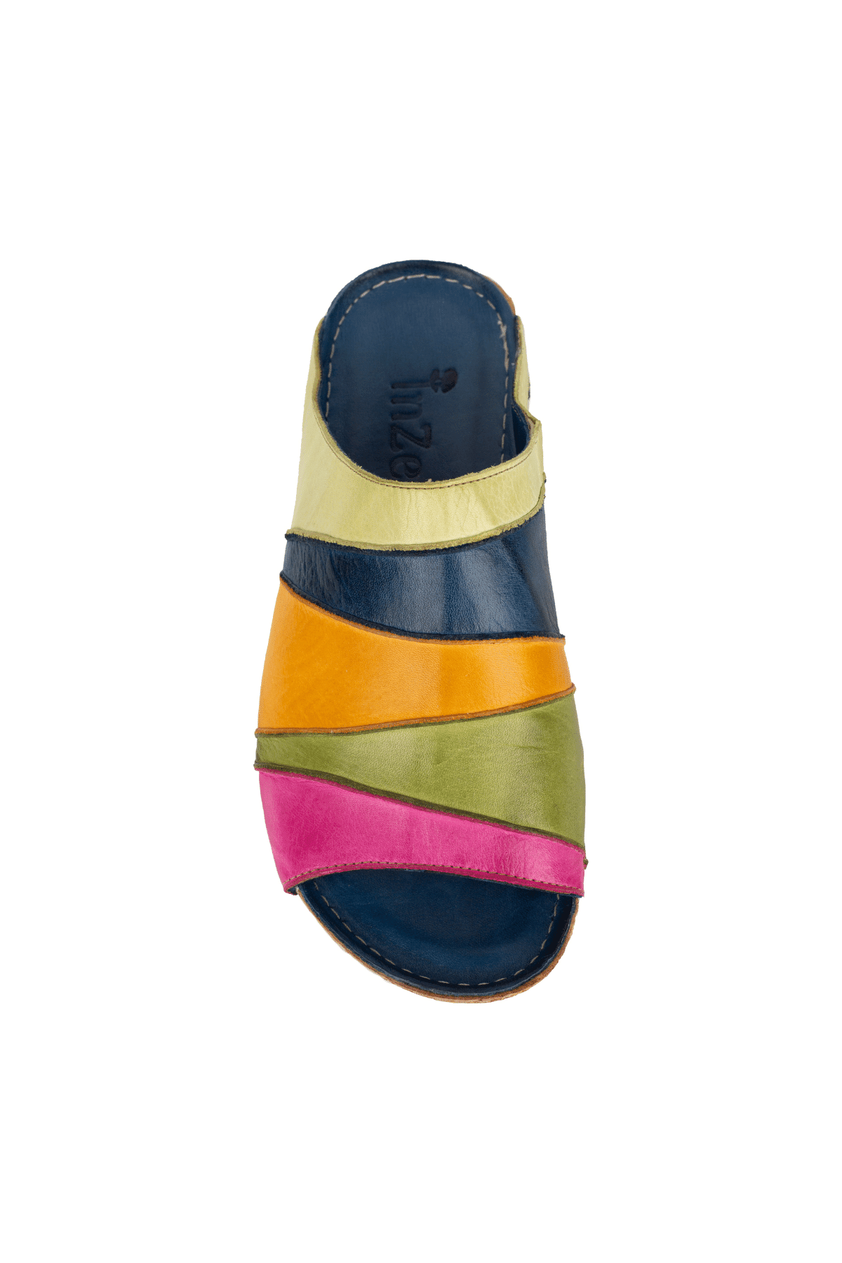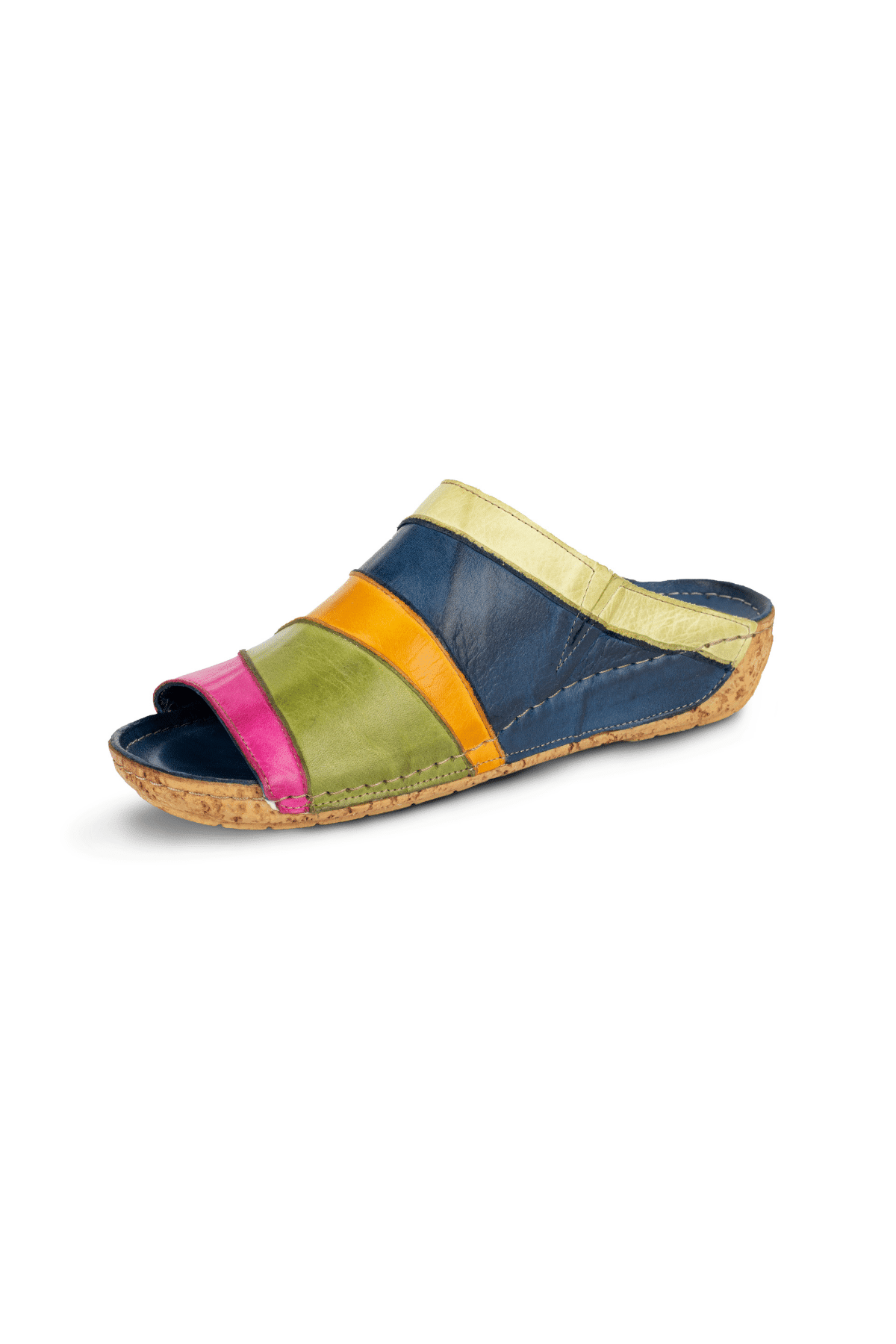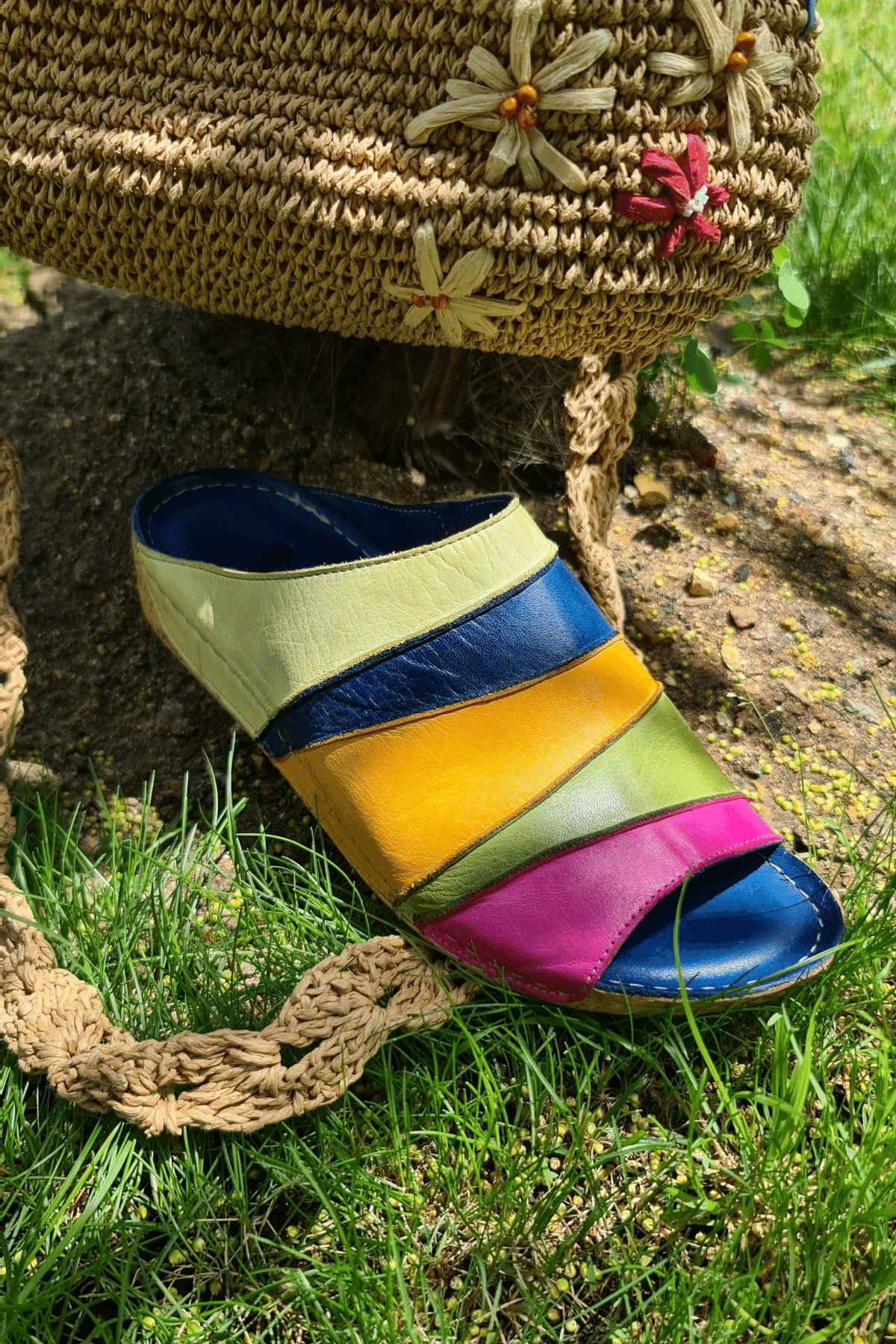 ÜÇGEN DİLİMLİ, ÇOK RENKLİ, İÇİ VE DIŞI HAKİKİ DERİ,DOLGU TOPUKLU,POLİÜRETAN MANTAR TABAN