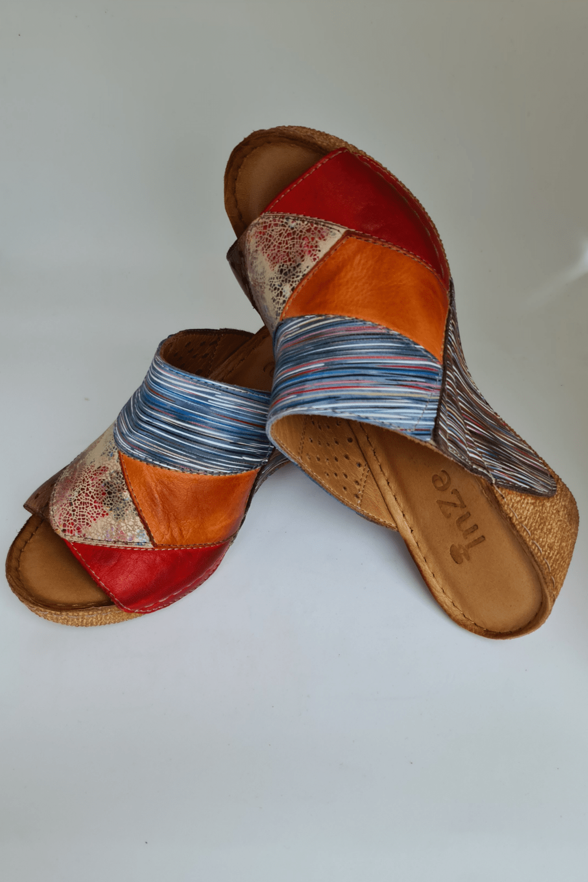 ÇİFT CIRTLI, ÇOK RENKLİ, İÇİ VE DIŞI HAKİKİ DERİ,DOLGU TOPUKLU,POLİÜRETAN MANTAR TABAN