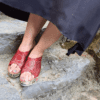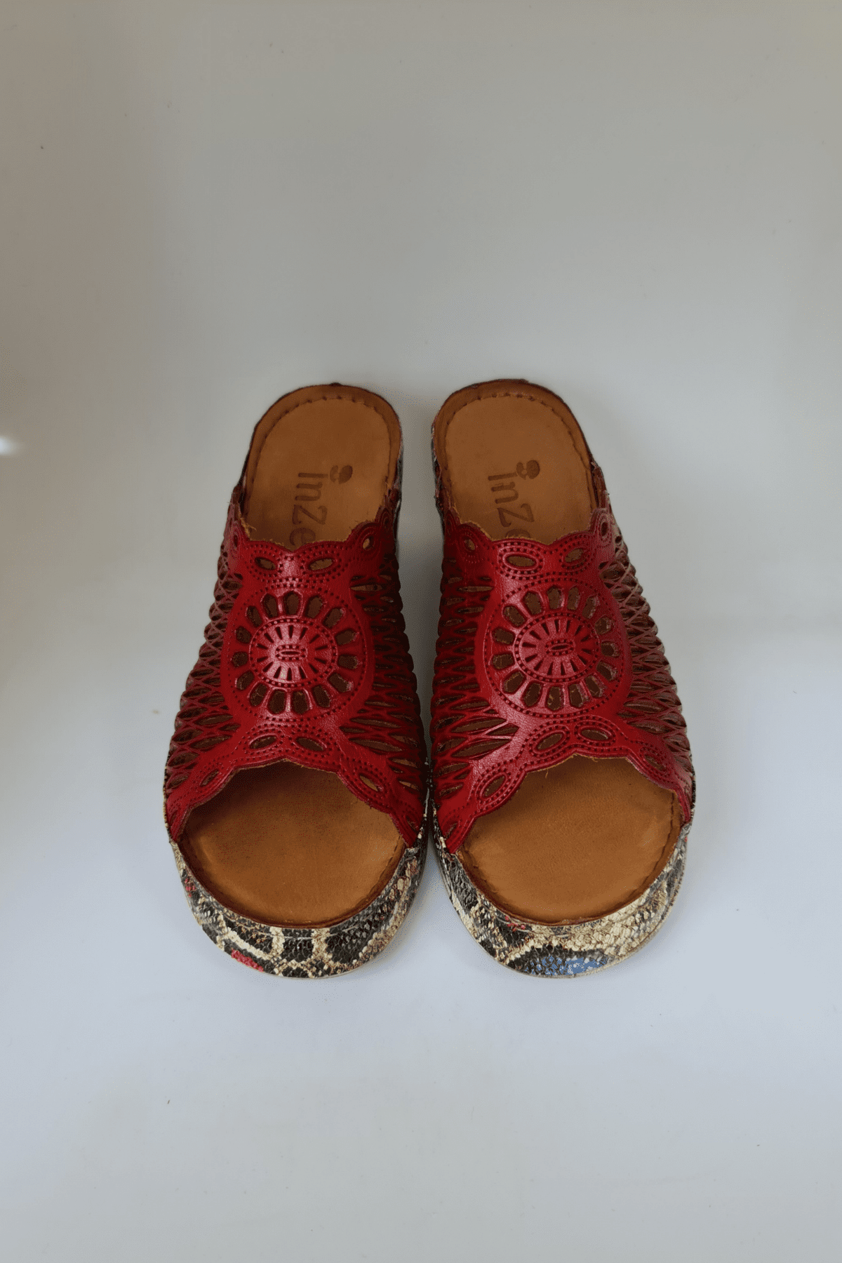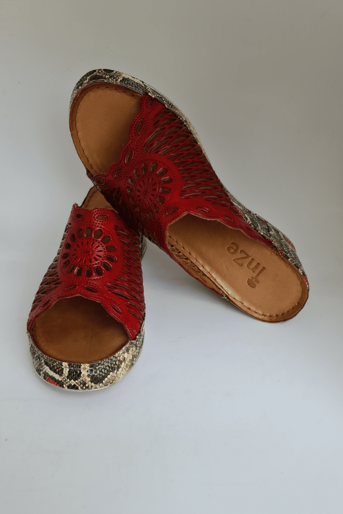 LAZER KESİM DETAYLI, ETNİK LOGOLU, İÇİ VE DIŞI HAKİKİ DERİ,DOLGU TOPUKLU,POLİÜRETAN MANTAR TABAN