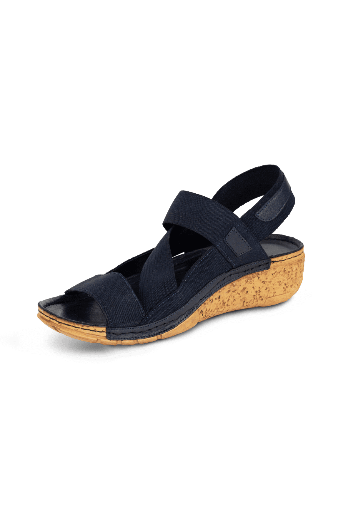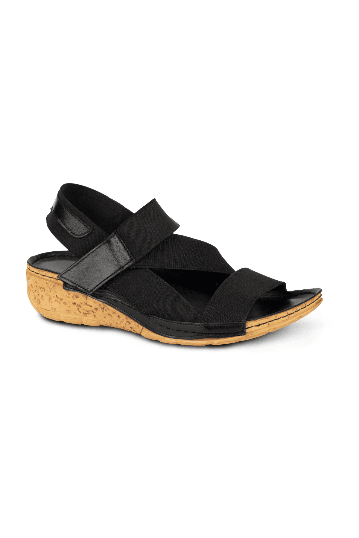 LASTİK DETAYLI, 3 BANTLI, İÇİ VE DIŞI HAKİKİ DERİ,DOLGU TOPUKLU,POLİÜRETAN MANTAR TABAN