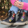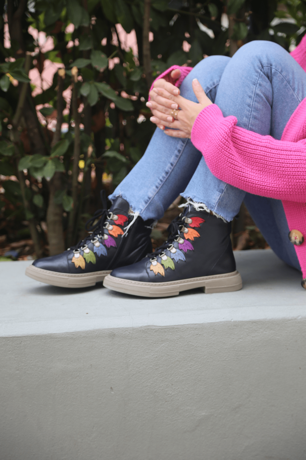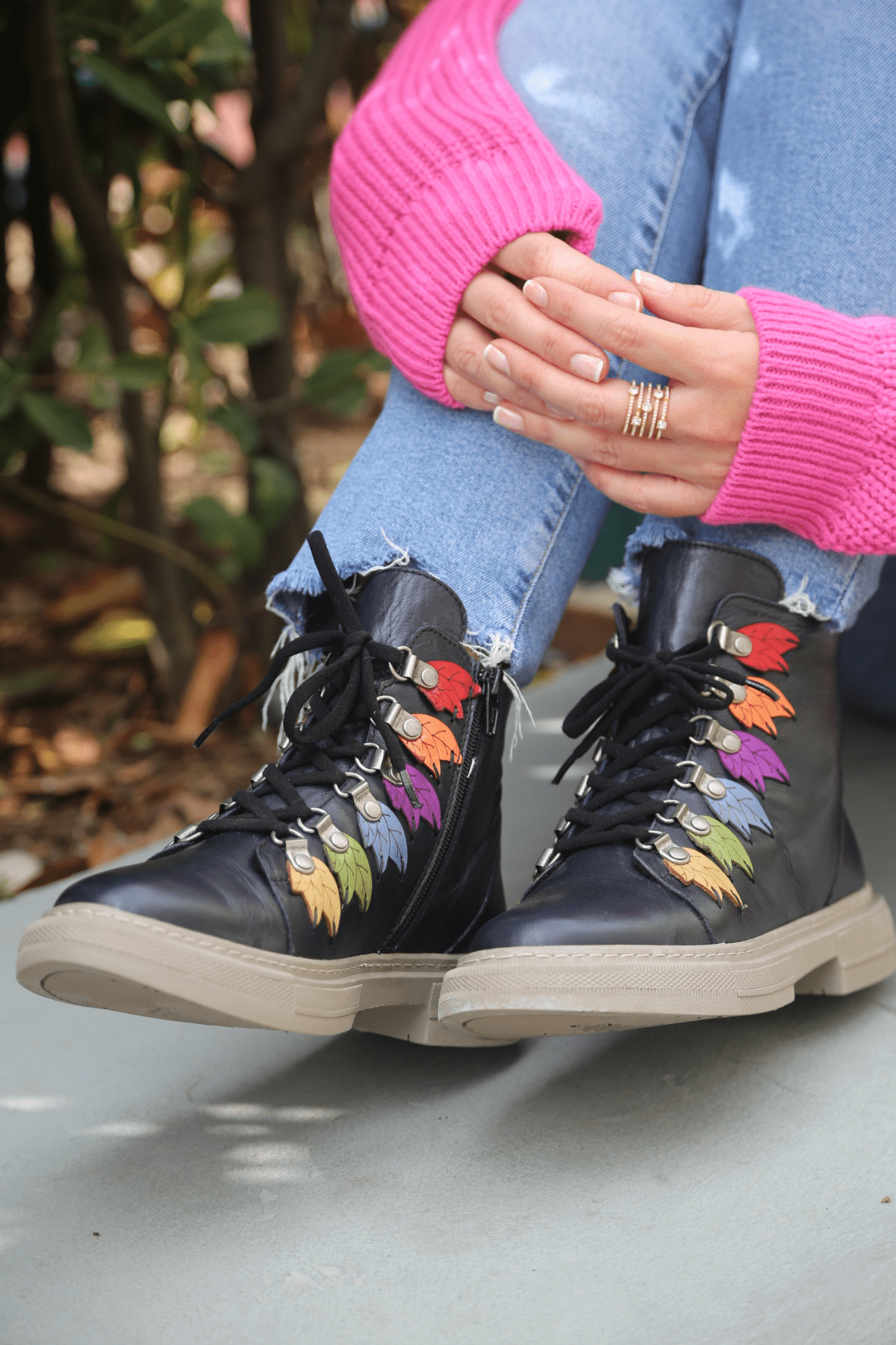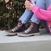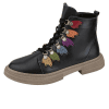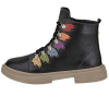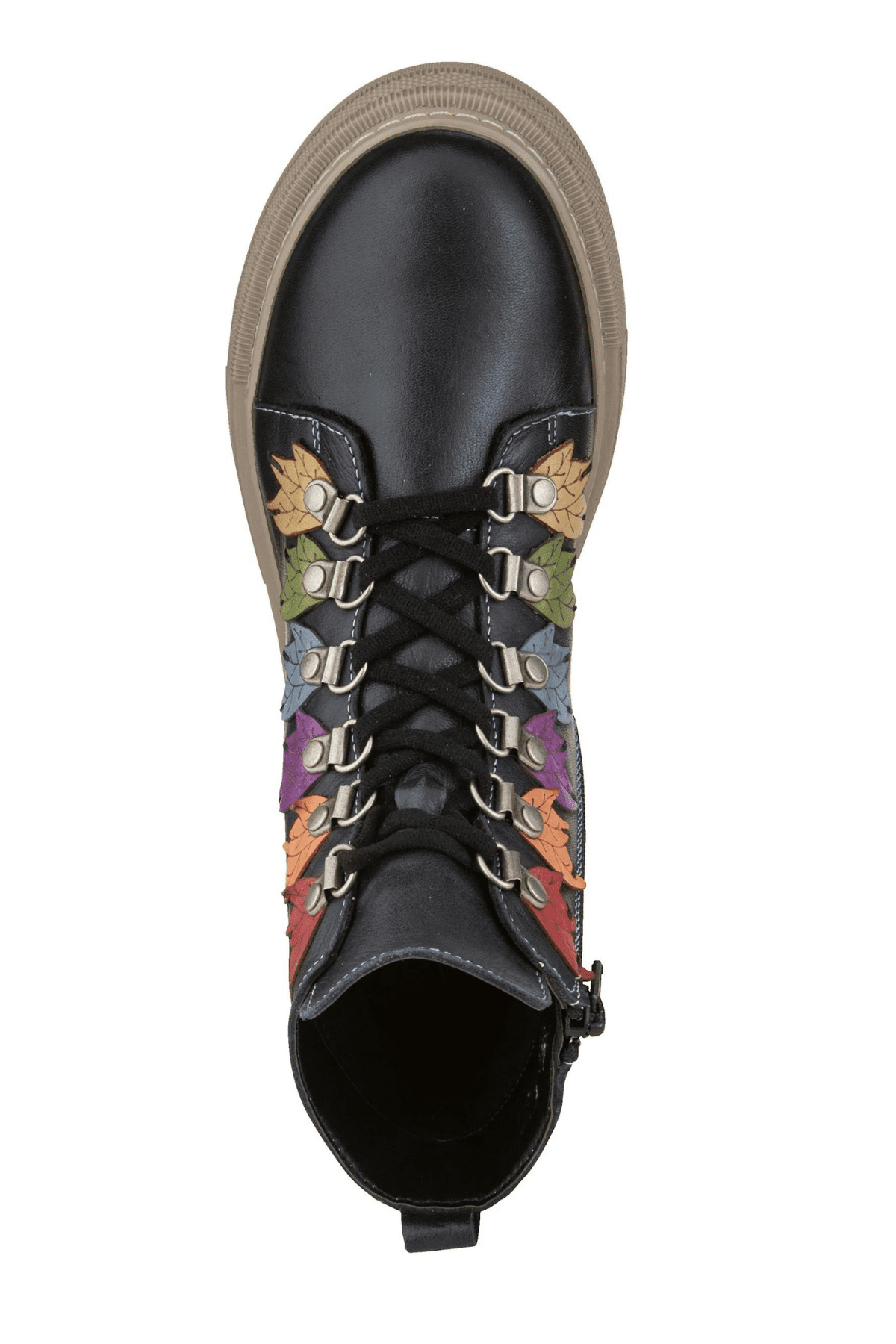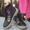 Hakiki deri bot, lastik bağcıklı, yan fermuarlı, renkli örme yaprak detaylı, kauçuk taban, çıkarılabilir microfiber lateks fuspet