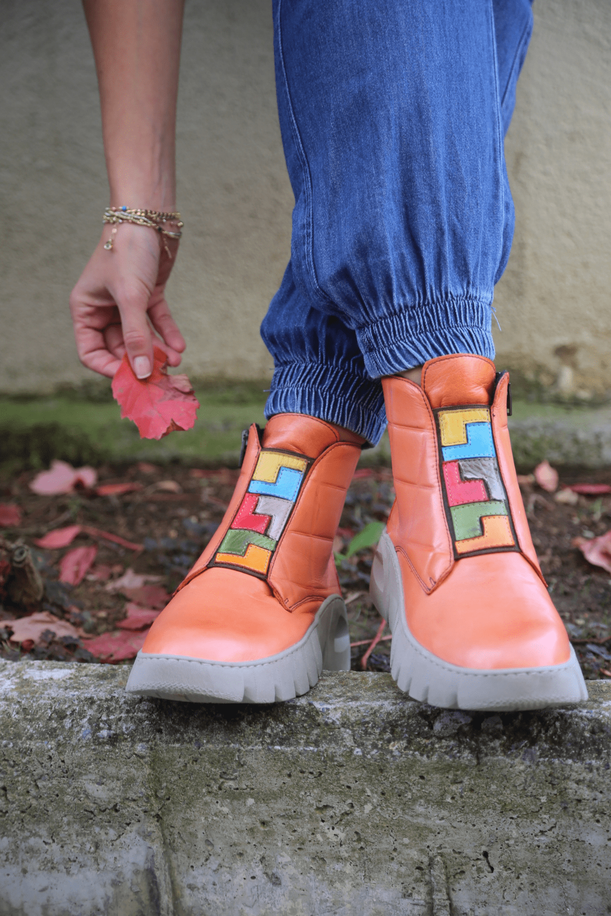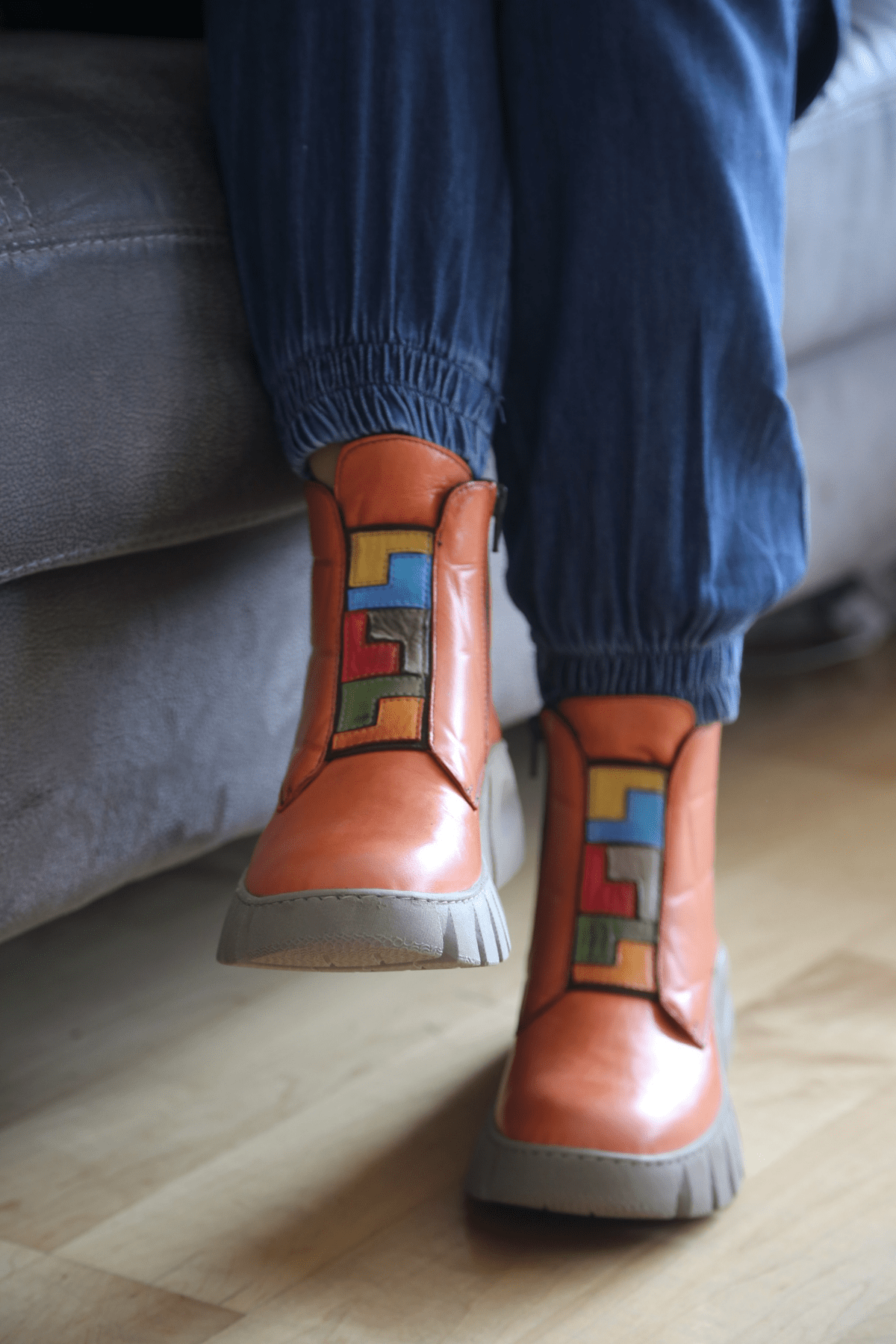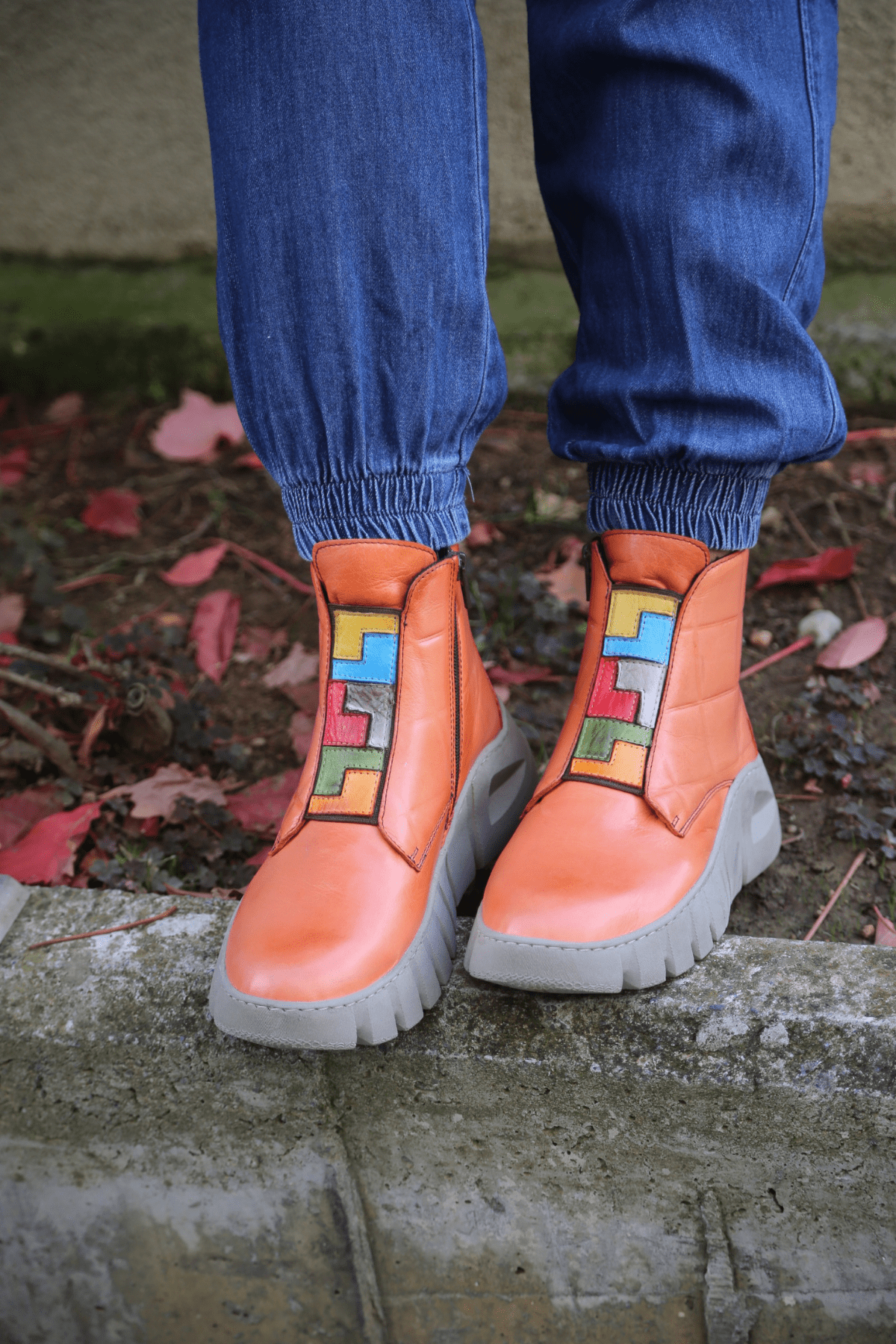 Hakiki deri bot, ön patchwork detaylı, ön lastikli, yan fermuarlı, light termo taban (hafif taban özellikli) , çıkarılabilir microfiber lateks fuspet