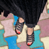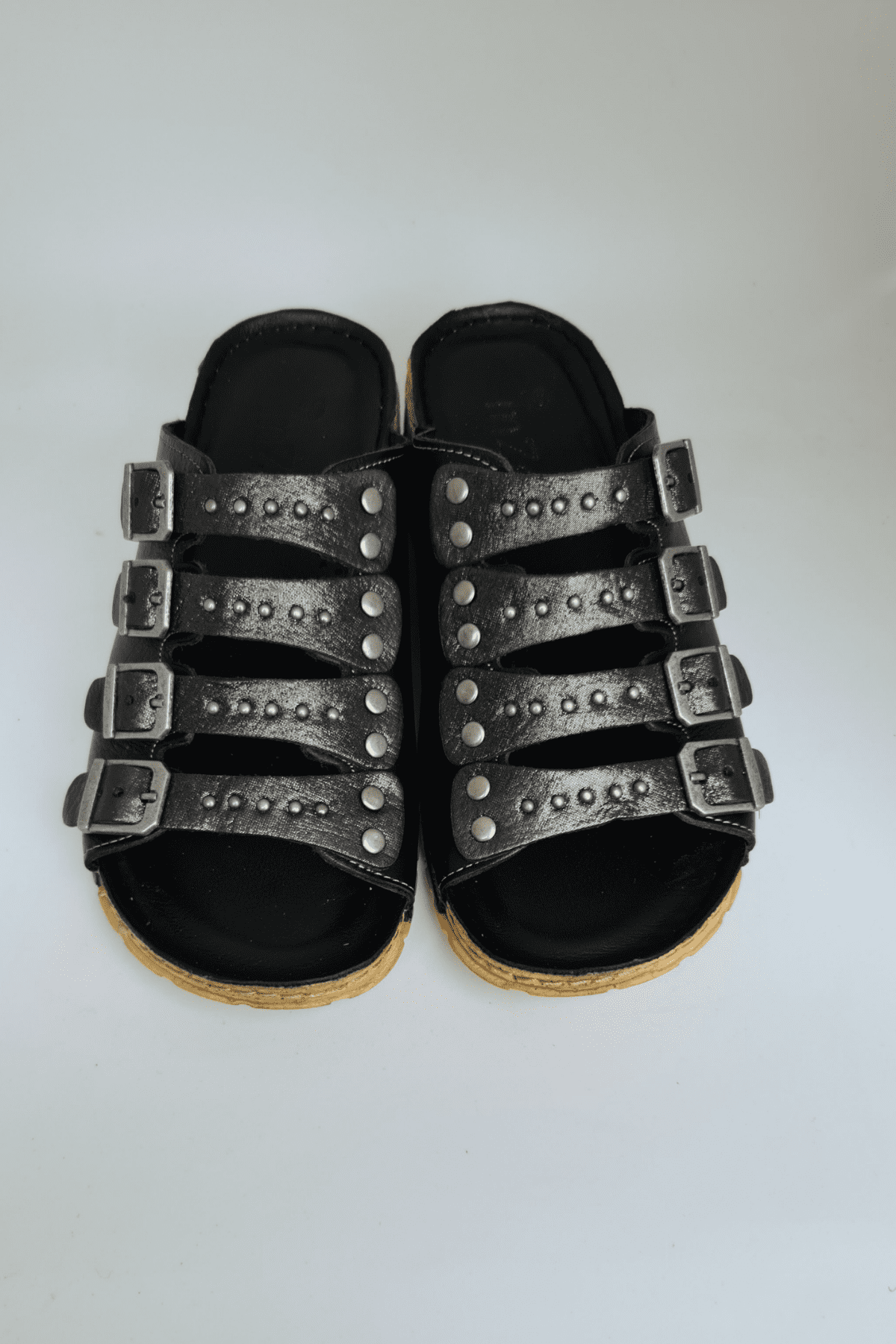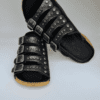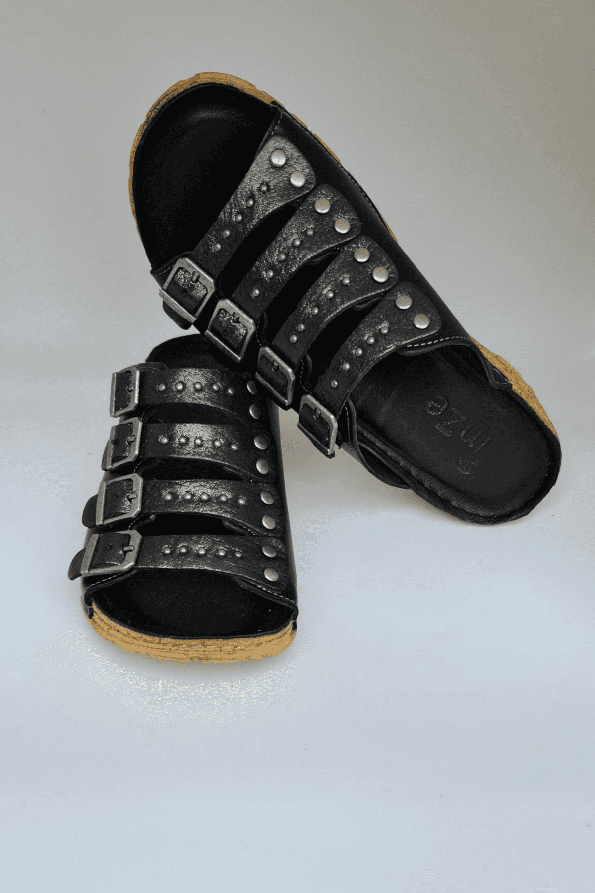 Çiçek detaylı, mantar poliüretan taban, iç dış hakiki deri.