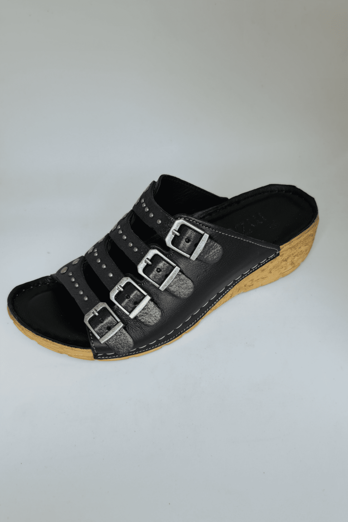 DÖRT TOKALI, TROKLU, ÇOK RENKLİ, POLİÜRETAN MANTAR TABAN, DOLGU TOPUKLU, İÇ DIŞ HAKİKİ DERİ.