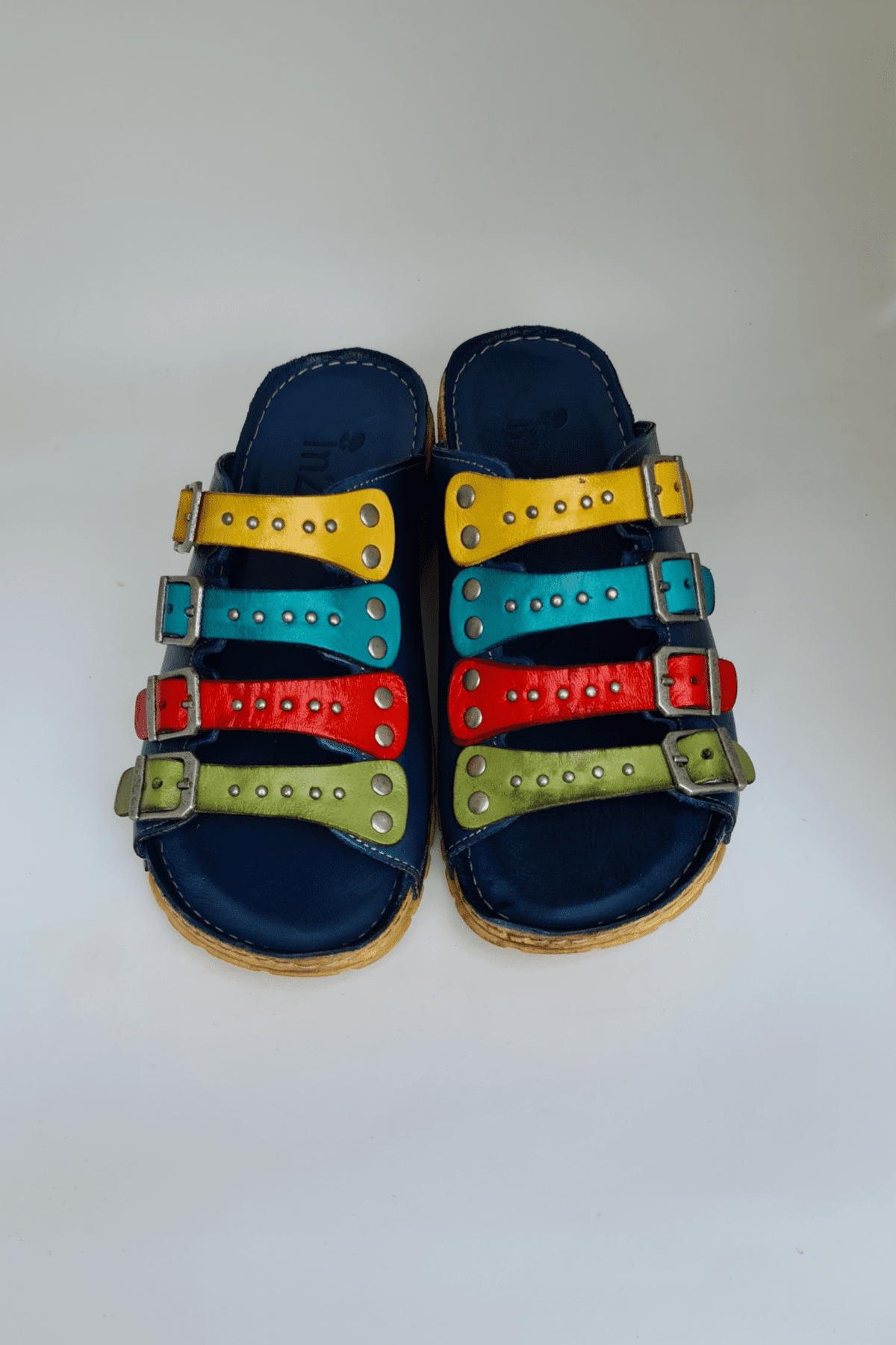 ZIMBA DETAYLI, İÇTEN LASTİKLİ, ÇOK RENKLİ, İÇİ VE DIŞI HAKİKİ DERİ,DOLGU TOPUKLU,POLİÜRETAN MANTAR TABAN