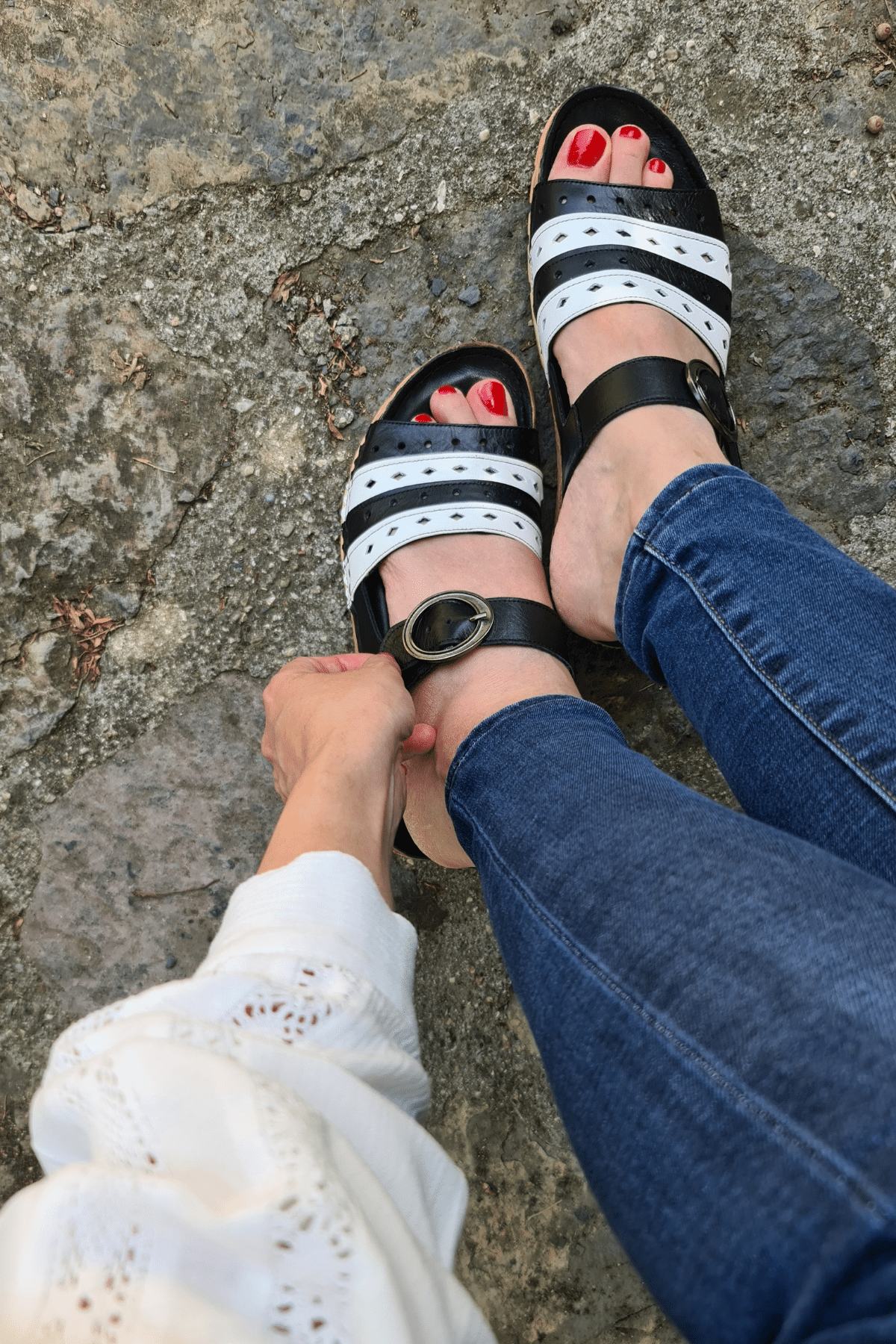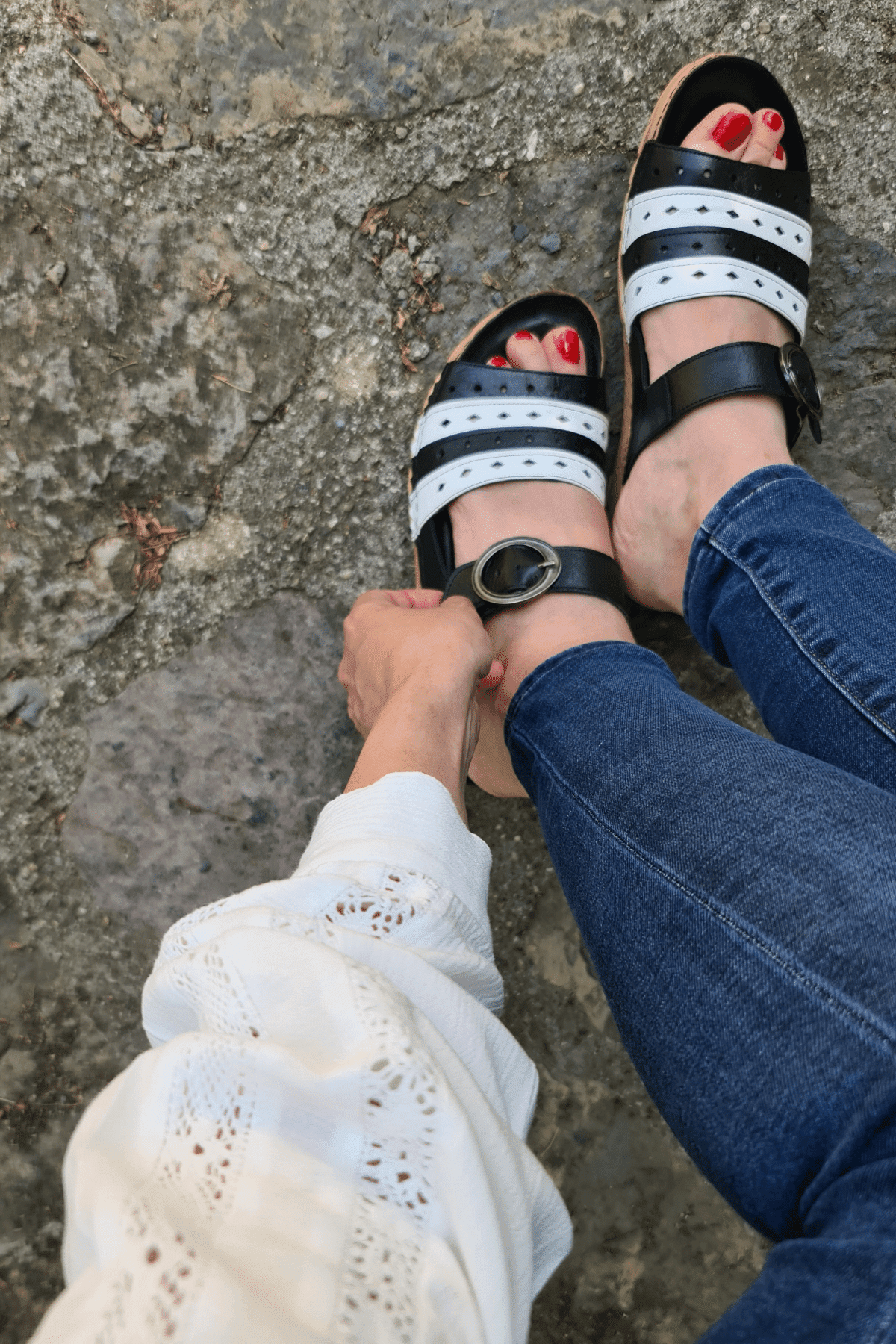 DÖRT TOKALI, TROKLU, ÇOK RENKLİ, POLİÜRETAN MANTAR TABAN, DOLGU TOPUKLU, İÇ DIŞ HAKİKİ DERİ