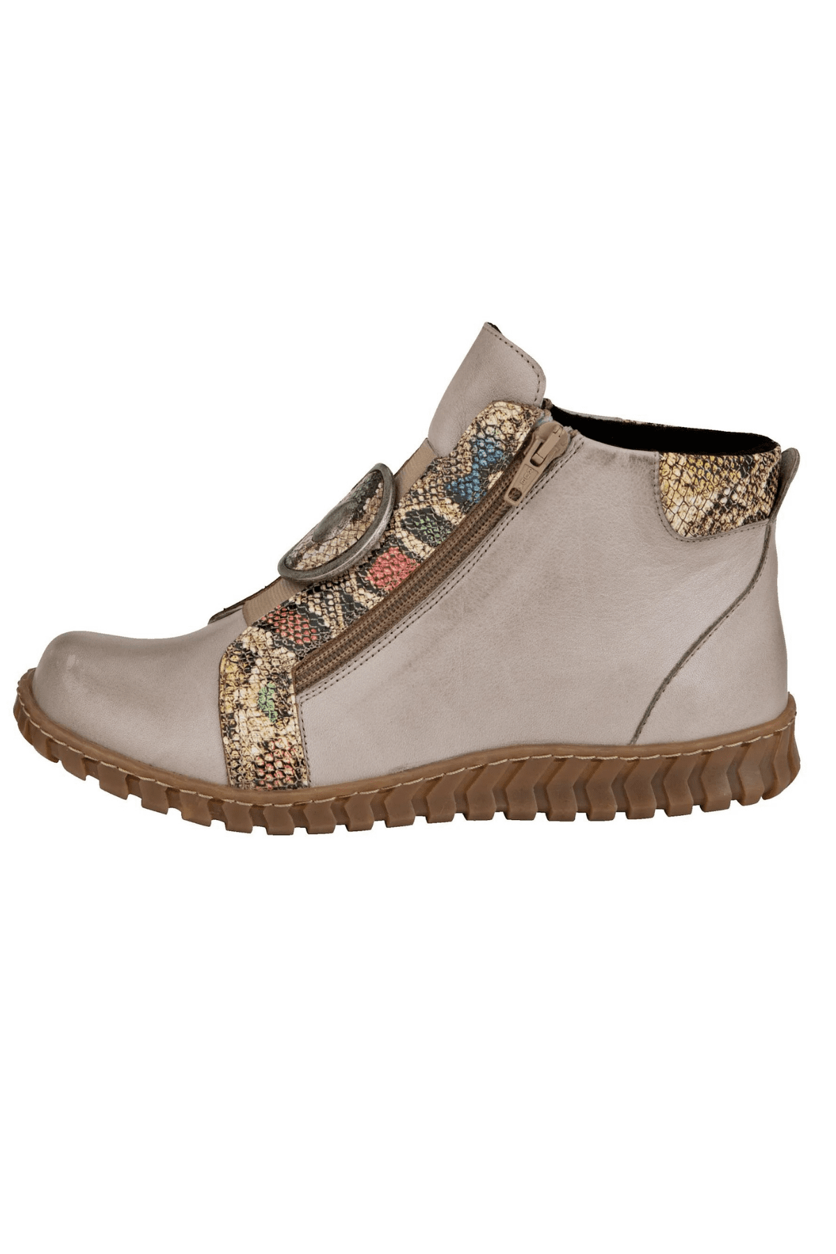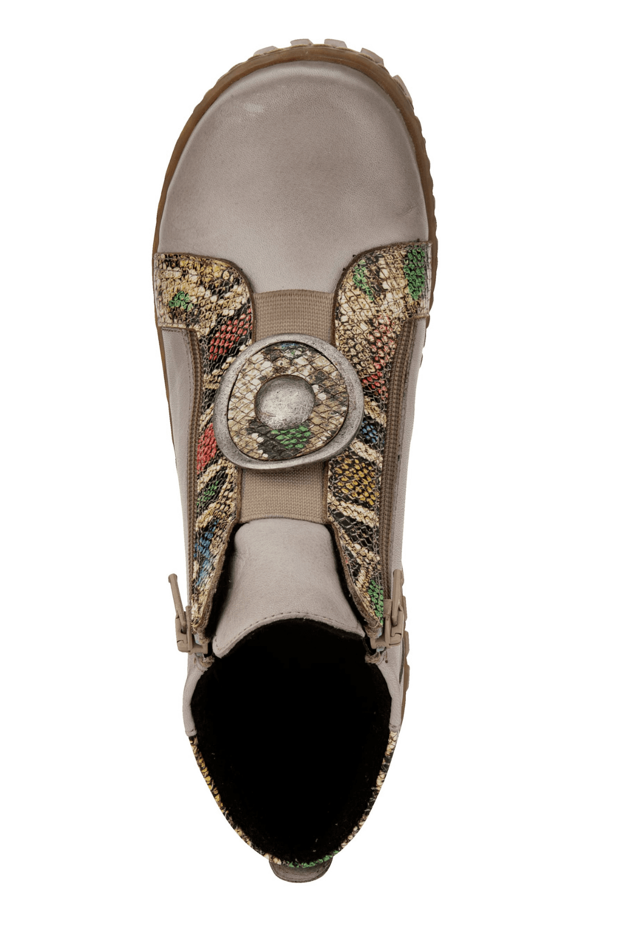 Hakiki deri bot, yılan deri desen detaylı, madalyon tokalı,çift taraf yan fermuarlı, ön lastikli, kauçuk taban, çıkarılabilir microfiber lateks fuspet